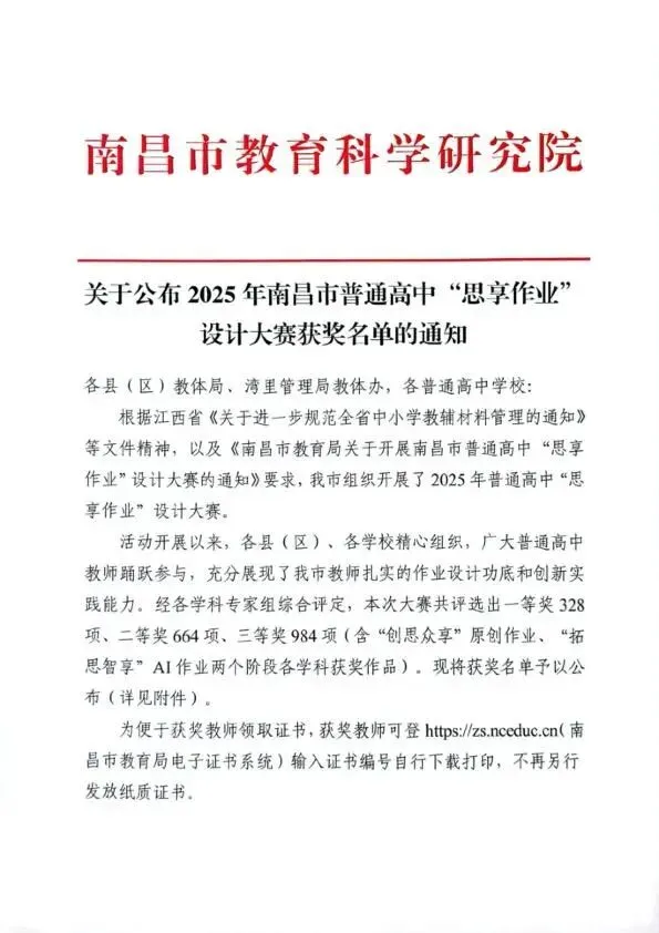 喜报|我校教师在南昌市普通高中“思享作业”设计大赛中斩获佳绩