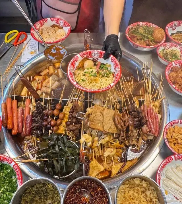 不同于火锅和麻辣烫,南昌水煮讲究的是食材在卤汤中长时间炖煮后的入味。必点藕丸、油条、卤鸡脚,再配一碗红豆汤,是当地人最爱的搭配。