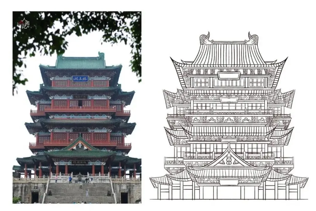 上元二年(675年),滕王阁建成二十二年后,迎来了一次改写命运的华丽转身。时任洪州都督阎伯屿重修滕王阁,落成之日大宴宾客,原本欲让女婿提前撰文彰显才学,却不料路过洪州的青年才子王勃即兴挥毫,写下千古名篇《滕王阁序》。这篇七百七十三字的骈文以辞藻华美、意境壮阔、情志高远成为中国文学史上的巅峰之作,王勃以文写景、借景抒情,引经据典,将滕王阁的地理形胜、宴饮盛况与人生哲理融为一体,让这座江南楼阁脱离单纯建筑属性,升华为文人精神寄托的象征。滕王阁从此成为天下闻名的千古名阁,《新唐书》《唐才子传》均记载此事,此后历代文人墨客慕名而来登阁题咏,其文化地位就此奠定,王勃之序也成为滕王阁千年文脉的起点与历经兴衰而不灭的文化底蕴。唐代中后期,滕王阁历经数次小规模损毁与修缮,大中二年(848年)首次毁于大火,江西观察使纥干众第二天便启动重建并于同年八月竣工,足见其在当时已是洪州城的文化地标,不容损毁,在唐代滕王阁始终是江南文人宴集、登高抒怀的核心场所,初唐的豪迈、中唐的清雅、晚唐的沉郁,皆在阁中留下了历史的印迹。 宋代是中国古建筑的成熟期,也是滕王阁重造的鼎盛阶段。北宋时期江南经济空前繁荣,文化氛围浓厚,地方官员视修缮名楼胜迹为文治之功,大观二年(1108年)洪州知府范坦主持重建滕王阁,大幅提升楼阁规制,突破唐代精巧格局,形成高阁临江、层峦叠翠的恢弘气势。宋代滕王阁依据《营造法式》建造,采用木构榫卯、飞檐翘角、高台基的典型宋式建筑风格,楼分多层,雕梁画栋,内部陈设书画碑刻,外部依托赣江景观,成为江南楼阁建筑的典范。此时的滕王阁不仅是文人雅集之地,更成为洪州城的城市地标与文化符号,苏轼、苏辙、王安石、黄庭坚、陆游等宋代文坛巨匠皆登阁赋诗,留下大量名篇,让宋代滕王阁的文化底蕴愈发深厚。南宋时期南昌成为江南战略要地,滕王阁虽历经战乱波及却始终未遭彻底损毁,地方官员多次修缮,使其在战火中保持文脉延续,成为南宋文人寄托家国情怀的精神场所。