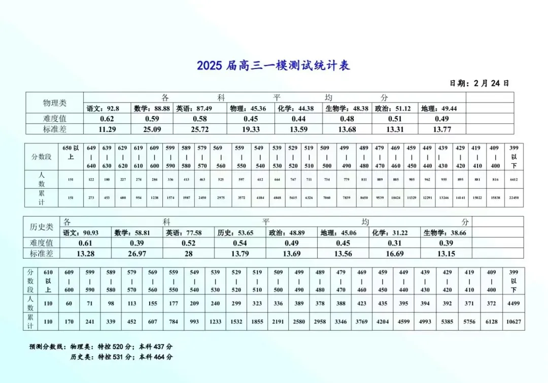 物理类:特控线520分,本科线437分