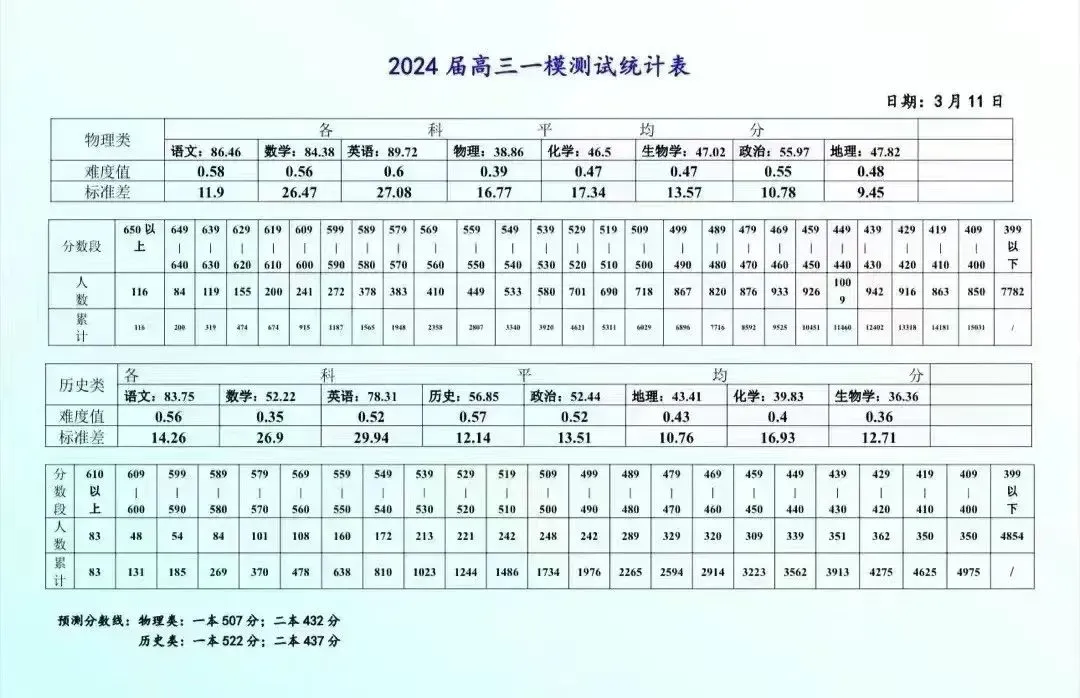 历史类:一本线522分,二本线437分