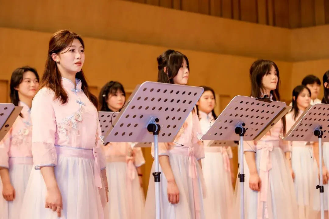 本次展演是学校“美育浸润”合唱项目成果的集中呈现,李朕老师每周专程到校为合唱团学子开展专业指导,从发声技巧、声部配合到情感表达进行细致打磨。现场共演绎11首风格多元的曲目,既有《敕勒歌》这类饱含中华古韵的作品,也有《The Warm Up Song》等外文经典,还有《萱草花》《滚滚红尘》等兼具情感与温度的曲目,学子们以整齐和声、真挚情感,将每首作品的魅力完美展现,赢得现场阵阵掌声。