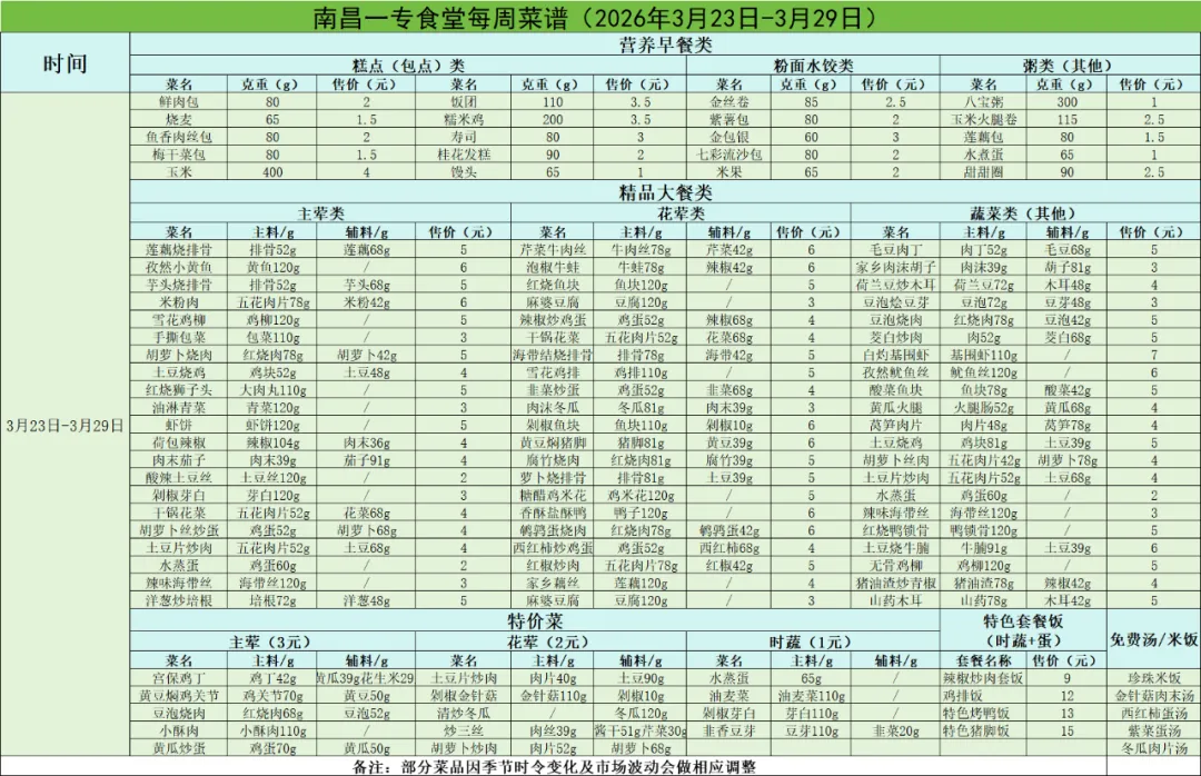 食迎春分,滋养同长 | 南昌一专校园食谱公示(3月23日-3月29日)