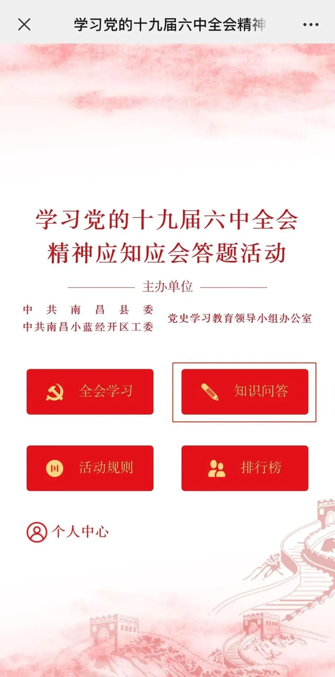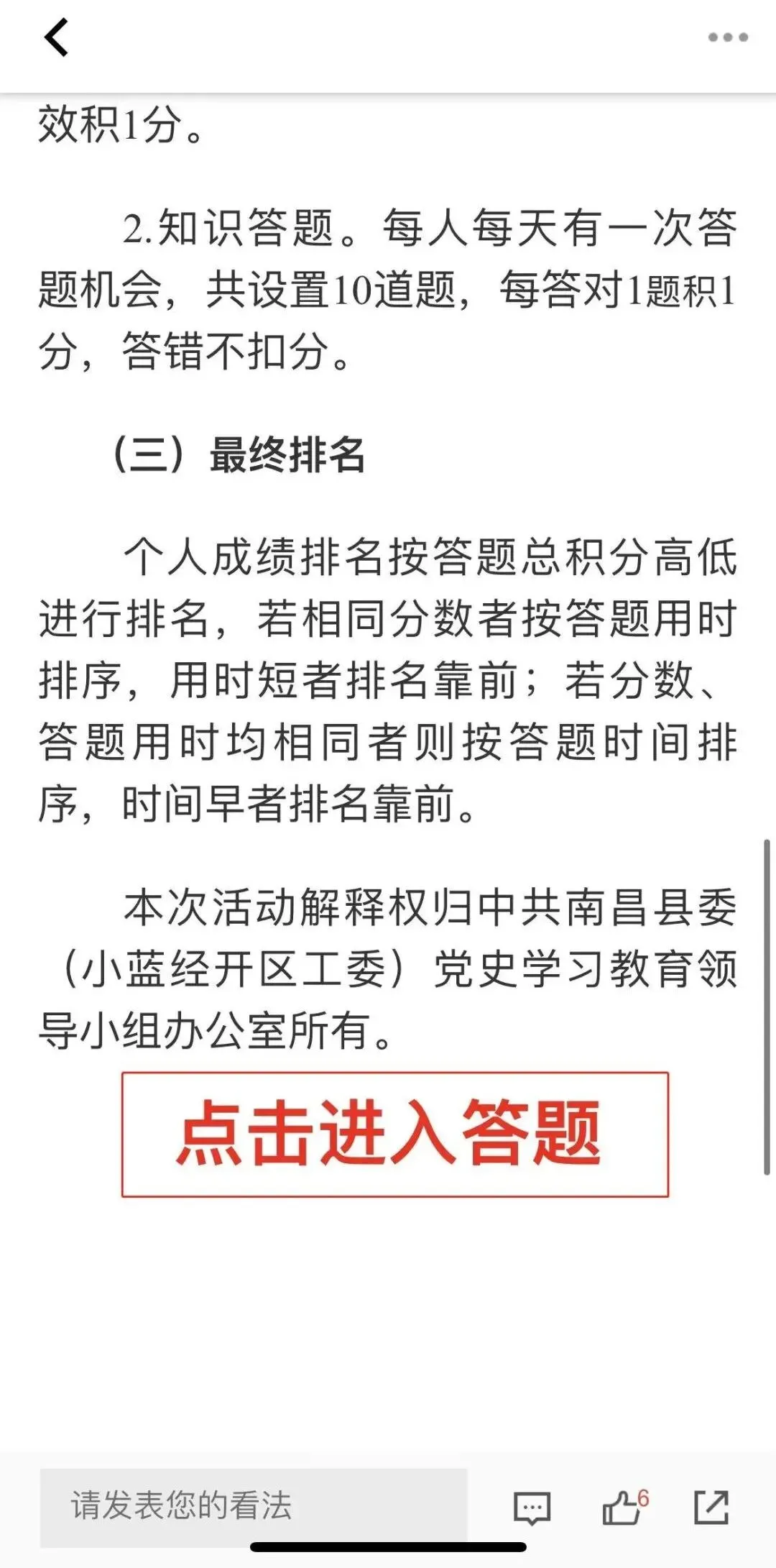 无论你是党员干部还是群众,都可以来“掌上昌南”新闻客户端参与南昌县(小蓝经开区)学习十九届六中全会精神应知应会答题活动,参与线上答题,共同以赛促学,检验学习情况、夯实学习成果!