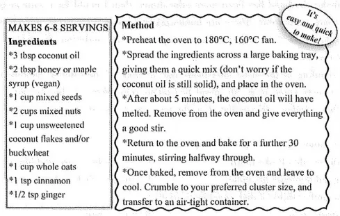 Fibre plays a vital role in our health, but many of us aren’t getting enough — only about 4% of UK adults meet the recommended 30g daily. Granola (麦片) can be a great way to start your morning with a fibre-rich boost, but shop-bought versions are often pricey and packed with sugar. This homemade granola, however, is not only full of fibre, but also rich in nutrients, plant points, healthy fats, and protein.