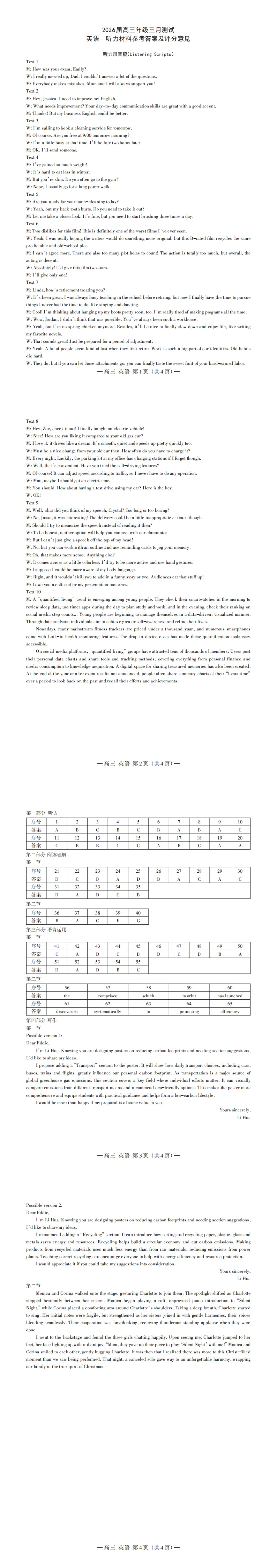 「江西省南昌市2025-2026学年高三下学期一模测试英语试题及答案(有听力)」