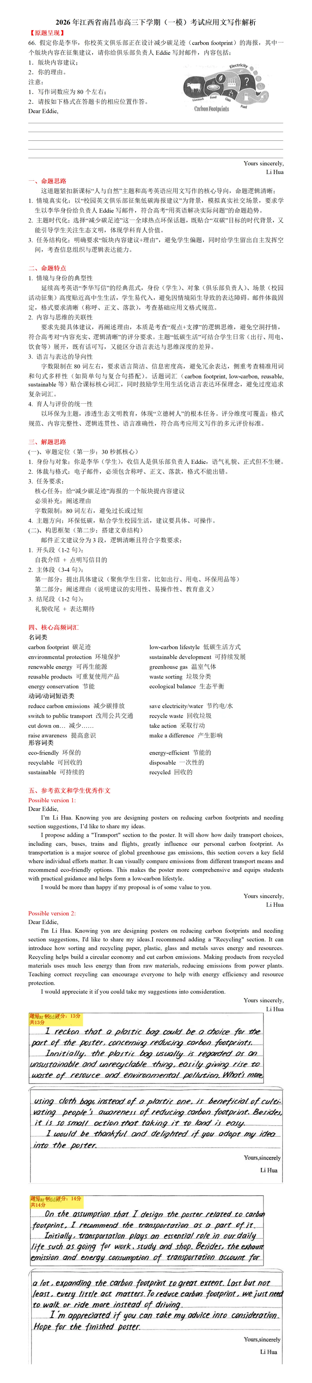 >【助力高考】第5期:2026年江西省南昌市高三下学期(一模)考试应用文写作解析