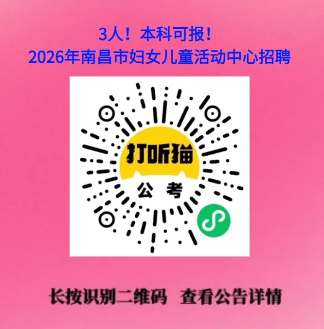>【南昌招聘】3人!本科可报!2026年南昌市妇女儿童活动中心招聘