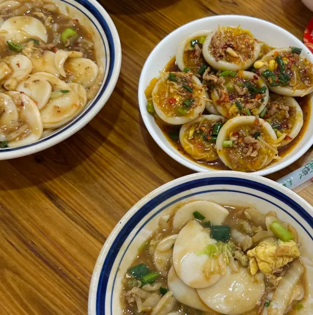 上饶吃东西,路子很实在。早上可以找一碗铅山烫粉,米粉滑,汤头鲜,辣味不是猛冲上来,而是慢慢在舌根铺开。再配个灯盏粿,外皮软糯,里头的萝卜丝和肉末带点咸香,热气一冒,人就醒了。