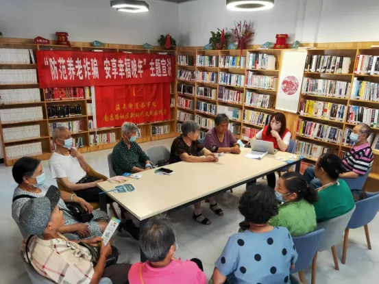 为提升老年人识骗防骗的能力,帮助老年人扎紧钱袋子,守护养老钱。8月11日上午,温泉街道南昌路社区新时代文明实践站在香城书房开展“防范养老诈骗安享幸福晚年”主题宣讲,10余老人参加活动。