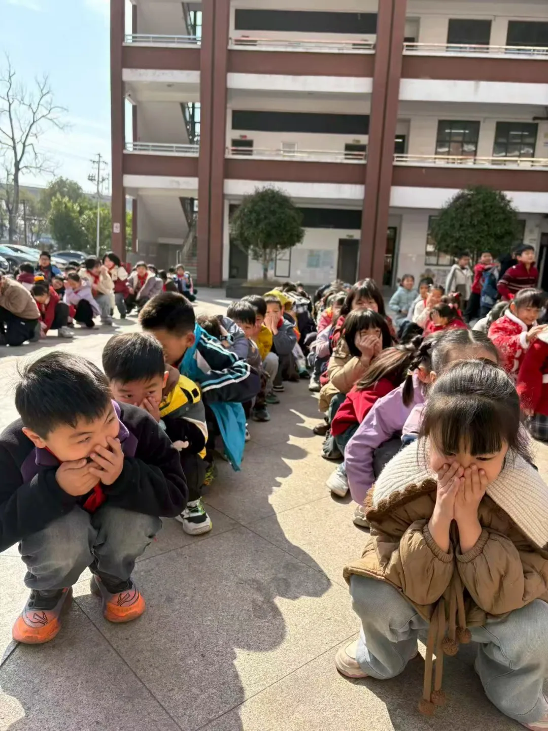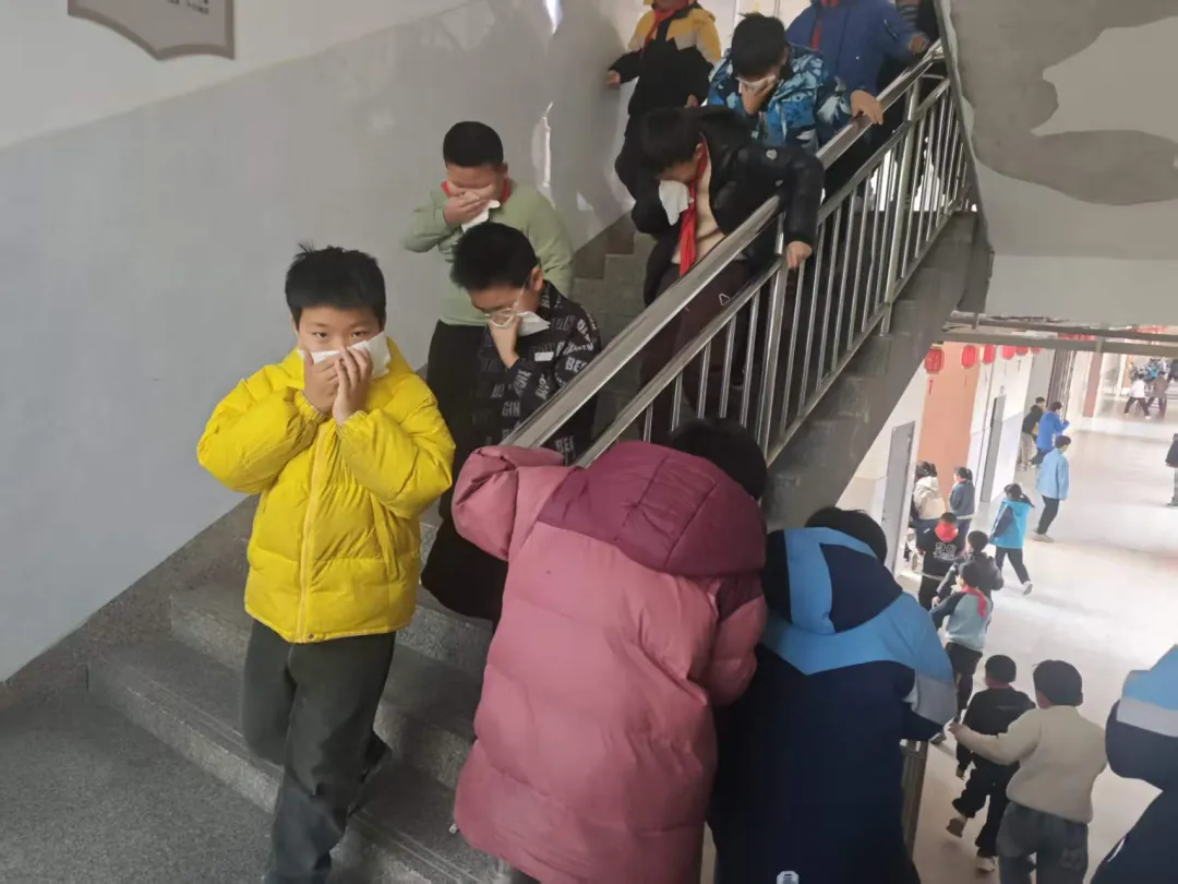 各班任课老师迅速反应,立即组织学生按照预定的疏散路线撤离。学生们在老师的引导下,迅速用随身携带的手帕或衣物捂住口鼻,弯下腰,沿着墙根快速前行。整个过程紧张而不慌乱,快速而有序。各楼层楼梯口和关键点位都有负责老师值守,引导学生分流,防止发生拥挤踩踏事故。仅用极短的时间,全体师生便安全、迅速地撤离到了学校操场的安全区域。