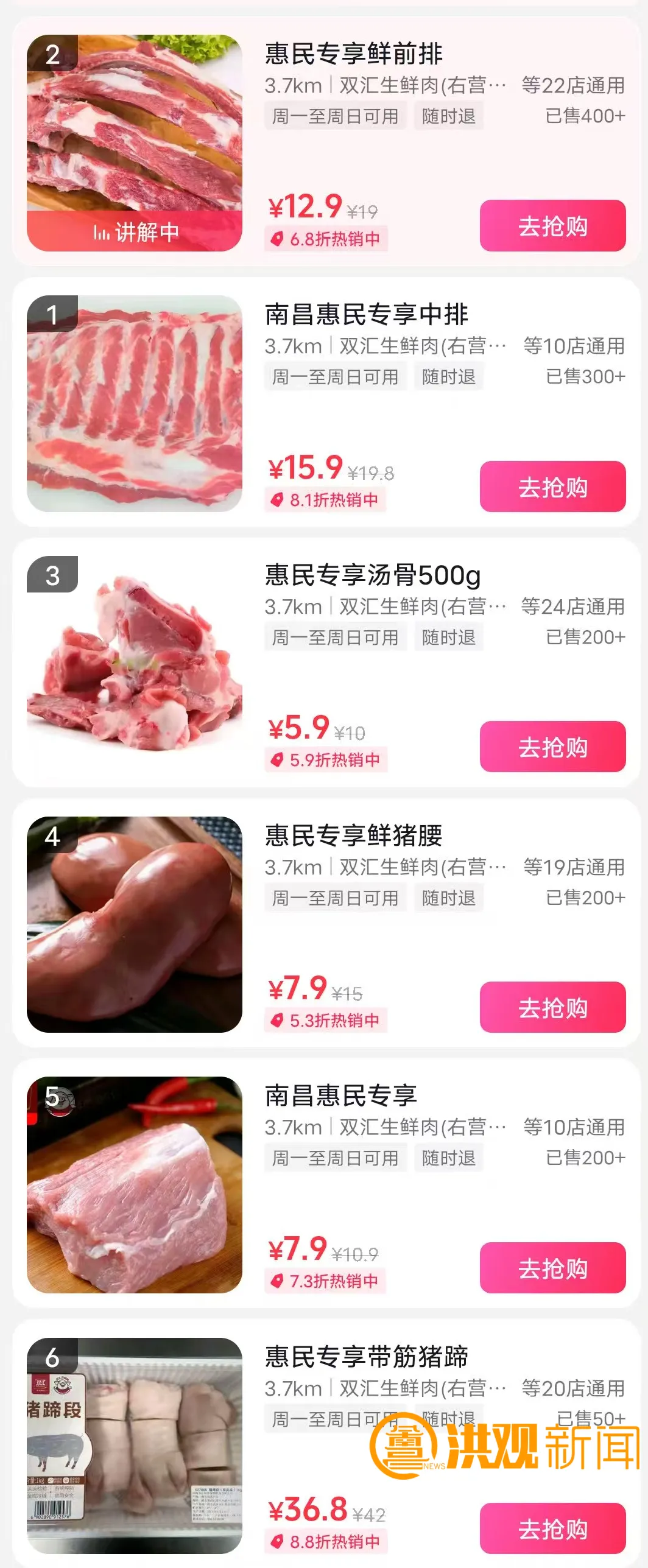 “我今天买的这个精品瘦肉,7块9一斤,确实划算!”在东湖区一家双汇冷鲜肉肉铺,正在挑选双汇冷鲜肉的市民张女士告诉记者,她家几乎天天要买肉,对价格特别敏感。“我是在直播间买的,然后直接到线下店铺提货。当时直播间的精品瘦肉7.9元/斤、前排12.9元/斤、中排15.9元/斤,最便宜的汤骨只要5.9元/斤,买的人还不少。”