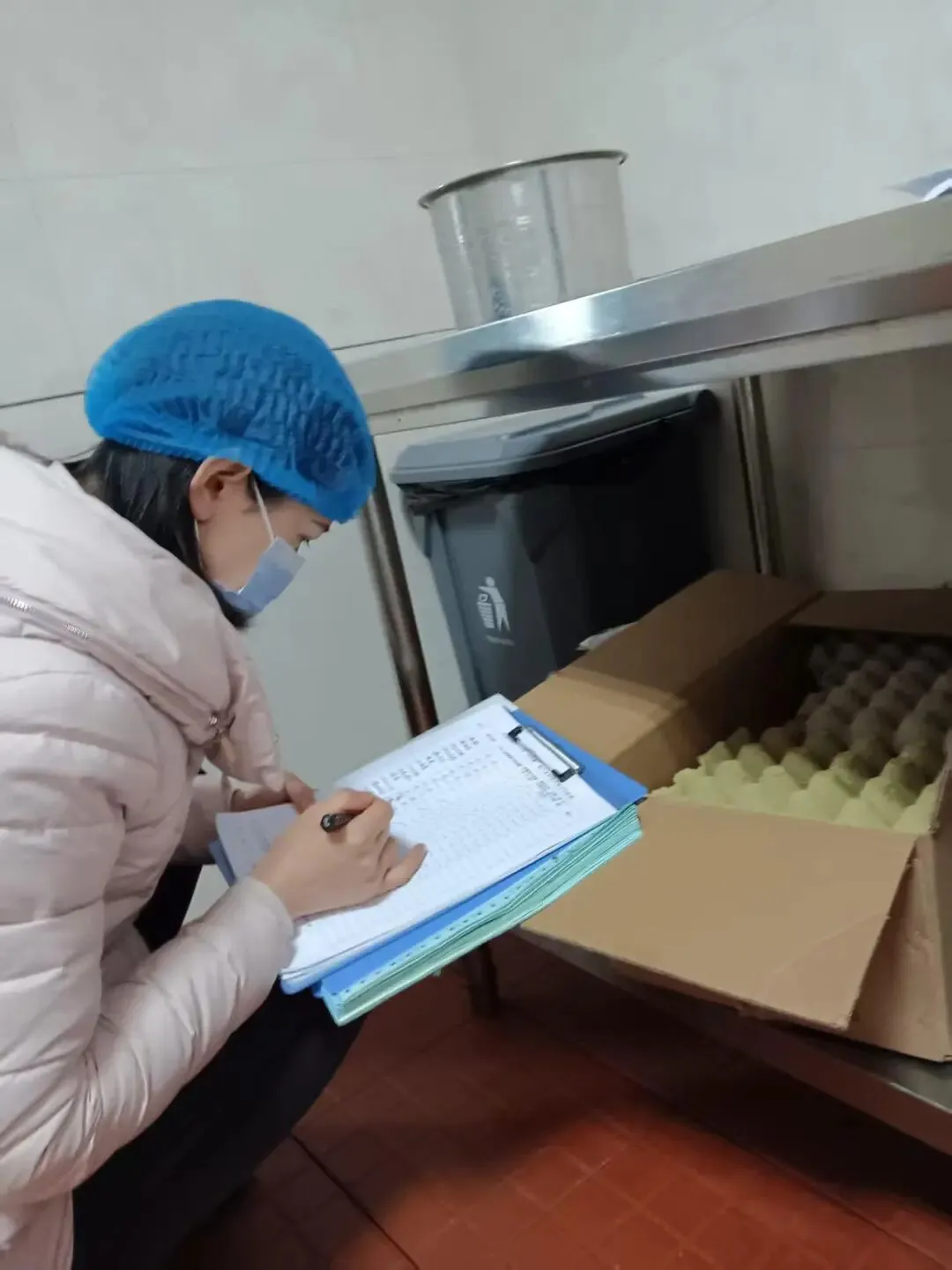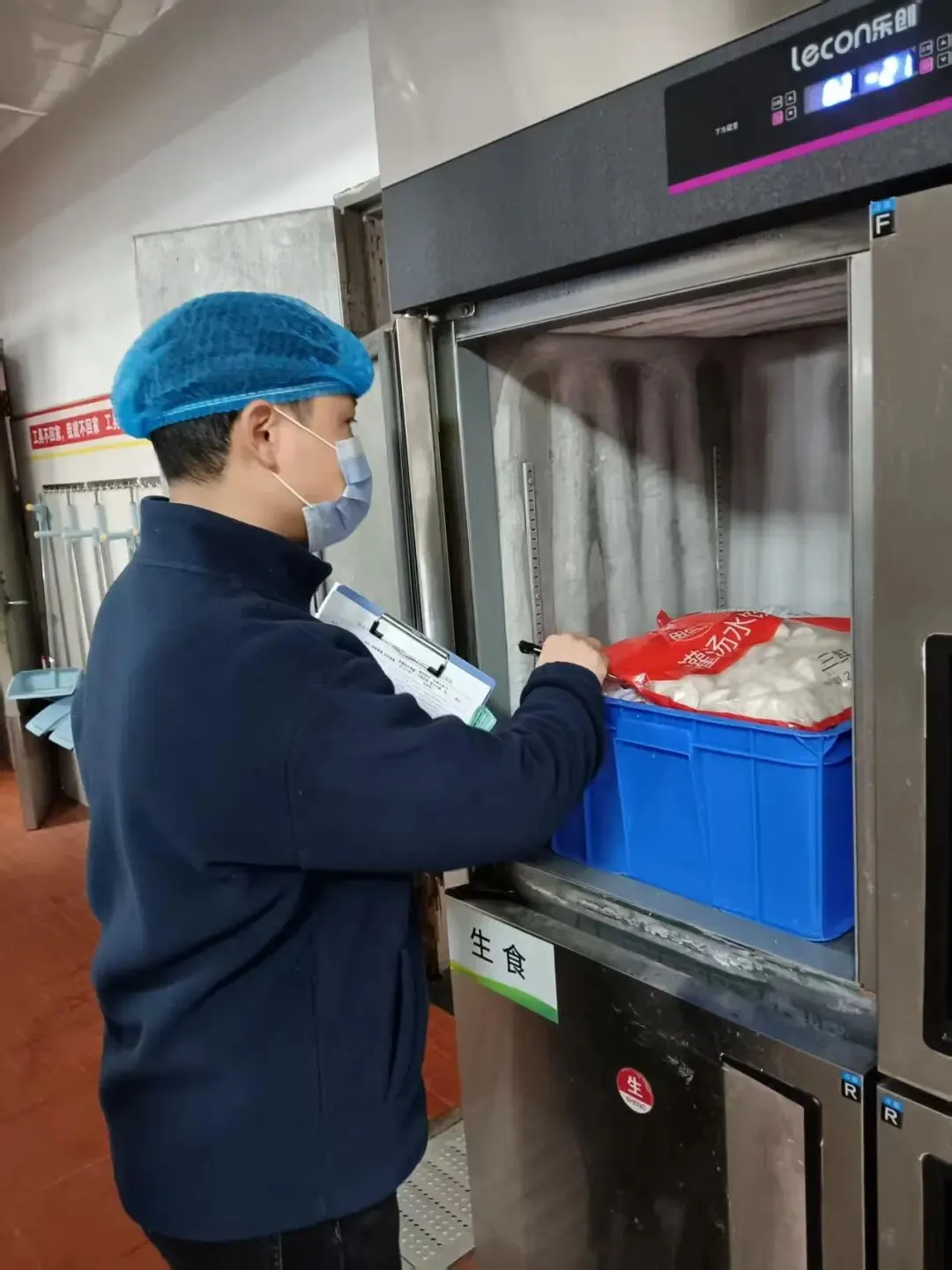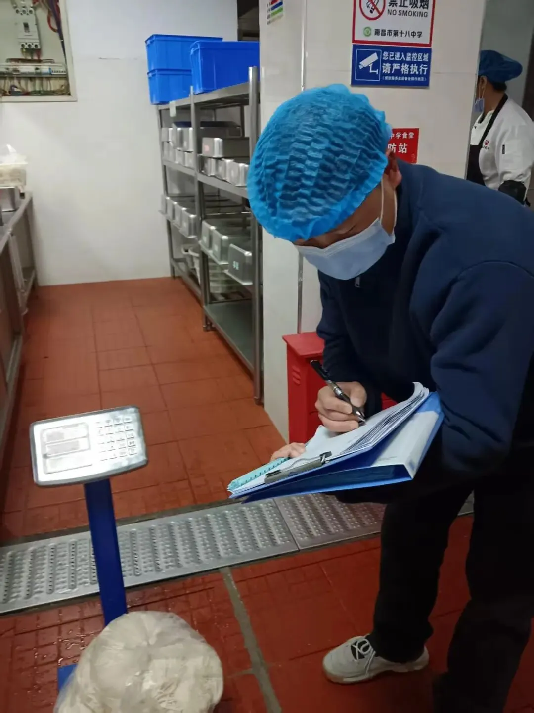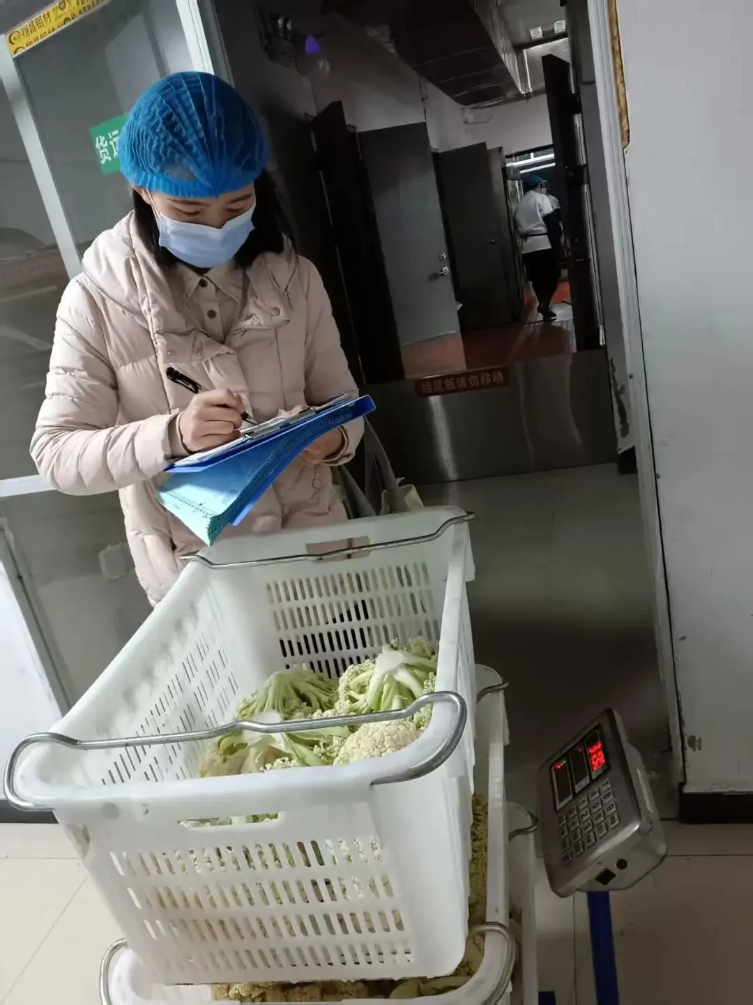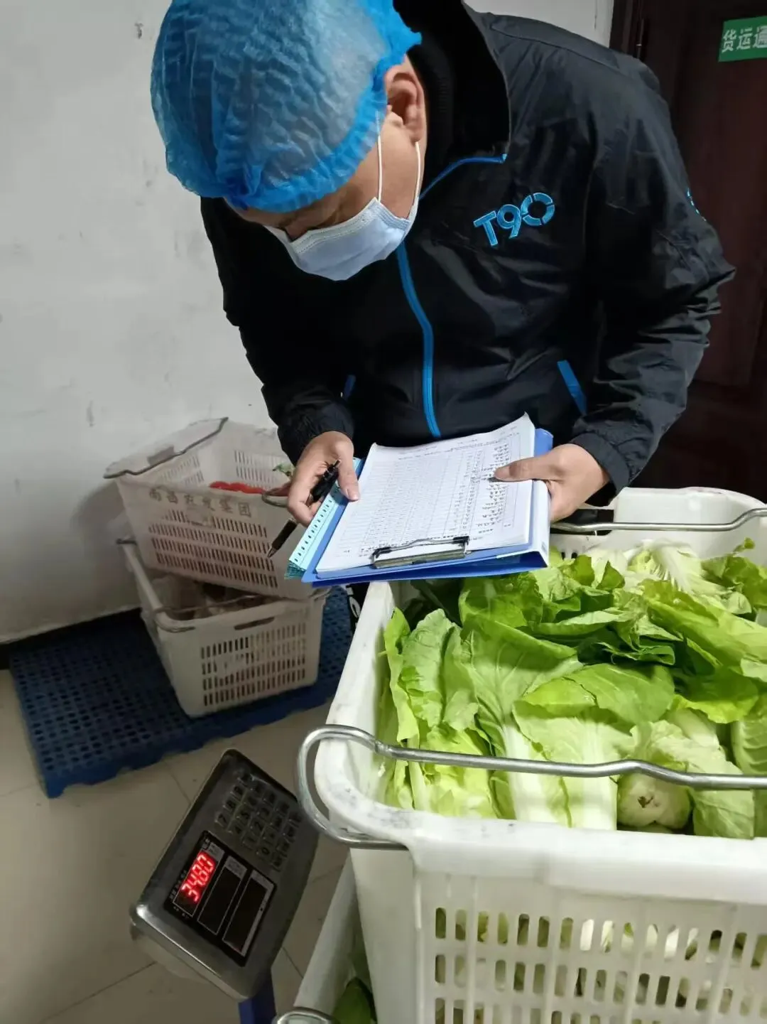 为保障师生饮食安全,十八中中层以上干部每天清晨前往食堂后厨,进行食堂食材(菜类、重量等)验收,检查食材新鲜度和卫生情况。