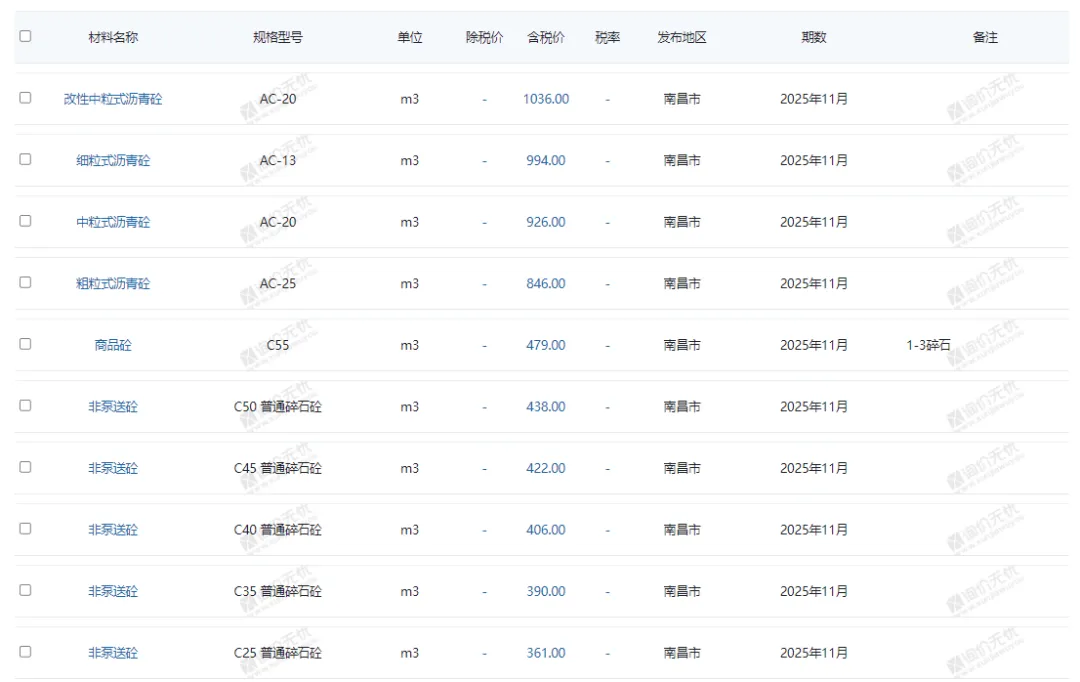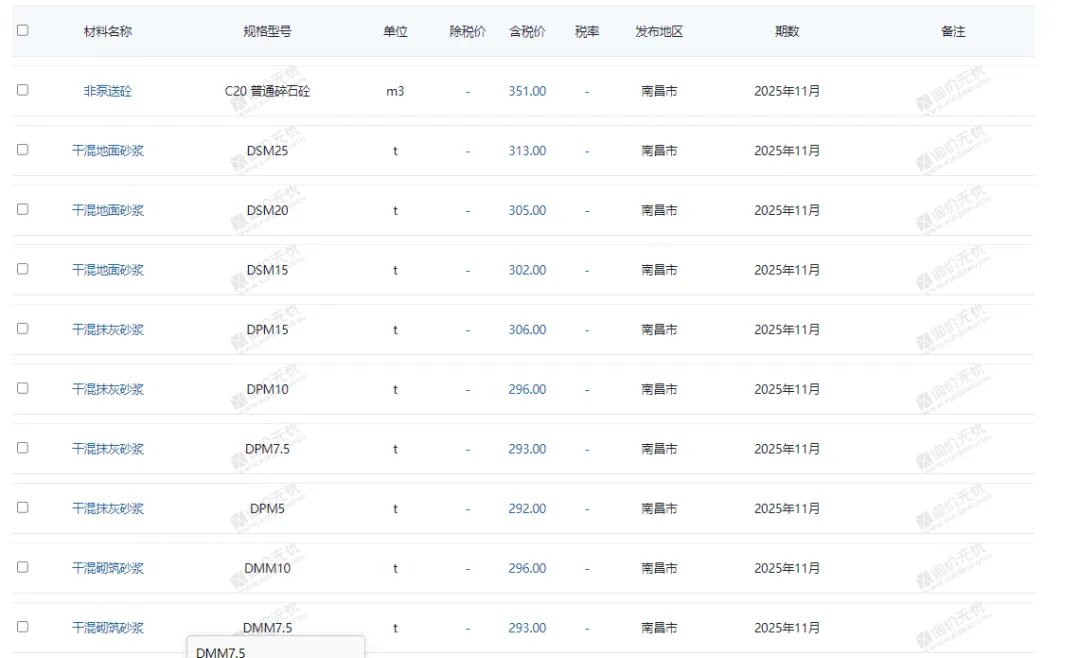 查看完整信息价可点击江西省南昌市工程造价信息汇总大全
