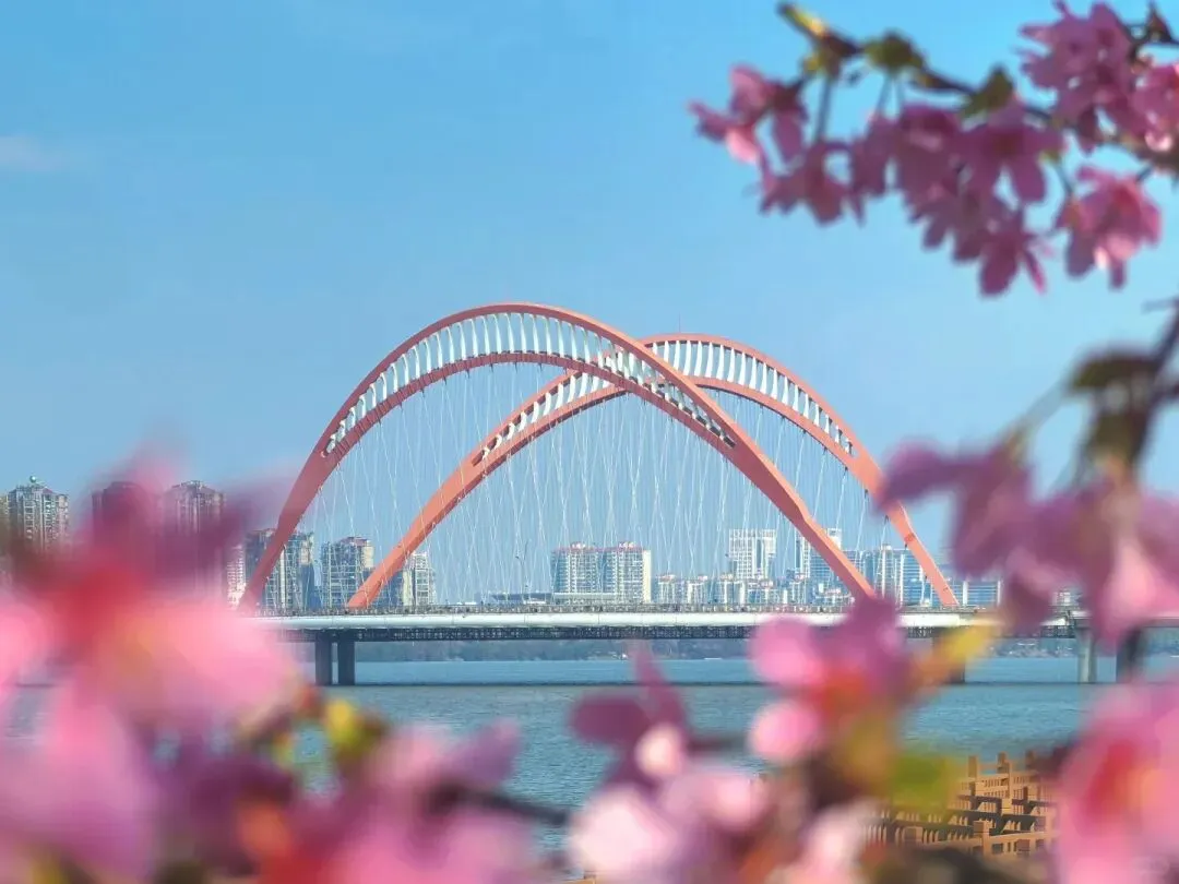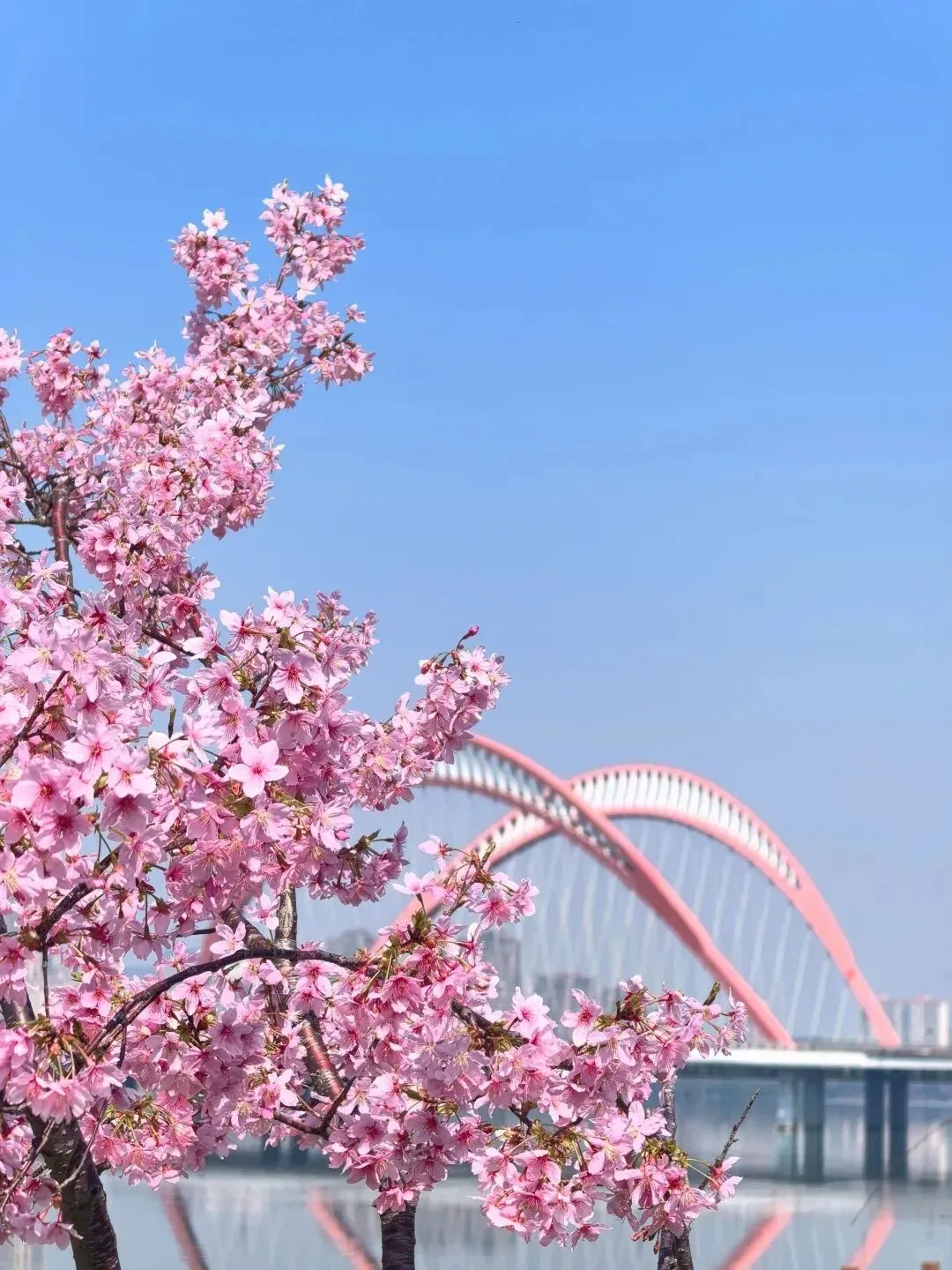 2. 猫耳朵大桥旁边:樱花配大桥同框,构图特别不撞款
