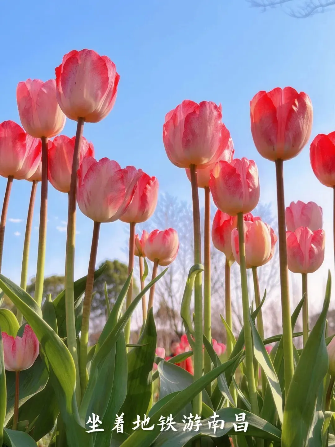 乘坐1号线至【卫东站】抵达马兰圩湿地公园,看油菜花肆意盛放、郁金香亭亭玉立;