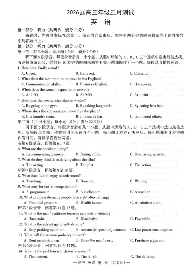 高三试卷:https://pan.baidu.com/s/1ZOow9kyygLdJPcxoy6EQ0Q?pwd=1111 提取码: 1111