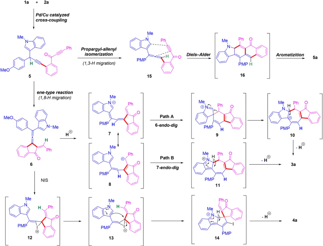 图3 Pd 催化串联/迁移/环化的完整机理示意。