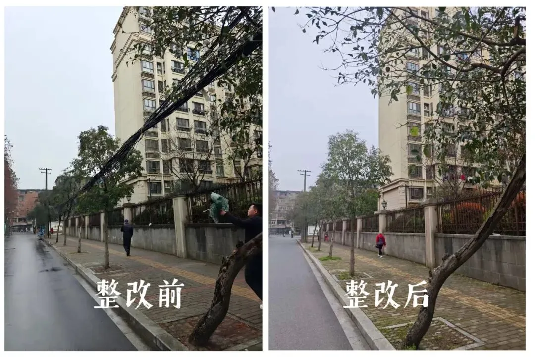 “以前抬头就是密密麻麻的线缆,不仅看着闹心,遇上大风暴雨天气还总担心脱落出事。现在清理完之后,抬头看着干净的天空,心里都敞亮了不少。”家住彩虹社区的张大爷看着家门口的变化,笑得合不拢嘴。