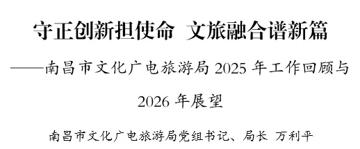 锐始者必图其终,成功者先计于始。2026年,南昌市文广旅游系统将勇担使命,以“深入看”的洞察找准方向,以“系统谋”的思维擘画蓝图,以“专业干”的作风狠抓落实,在省文旅厅和市委、市政府的坚强领导下,坚定信心、埋头苦干、锐意进取,不断开创文广旅游高质量发展新局面,奋力书写全面建设社会主义现代化南昌的文广旅游新篇章!