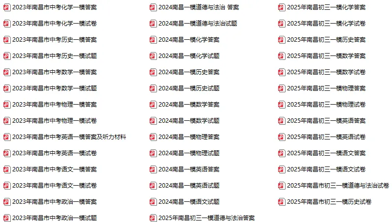 为了帮大家高效复盘、精准刷题,我们特意整理了2023-2025年南昌初三一模全科真题卷+答案解析,高清支持打印,不用到处搜集,一键就能领取!