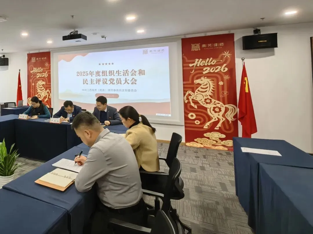 为深入学习贯彻党的思想理论,切实提升党员队伍的凝聚力与战斗力,依照上级党组织的相关要求,江西南芳(南昌)律师事务所党支部于 2026 年 3 月 23 日下午,在律所会议室成功召开了 2025年度组织生活会和民主评议党员大会。此次会议由党支部书记严林福主持,支部党员及部分青年律师积极参与,取得了丰硕成果。