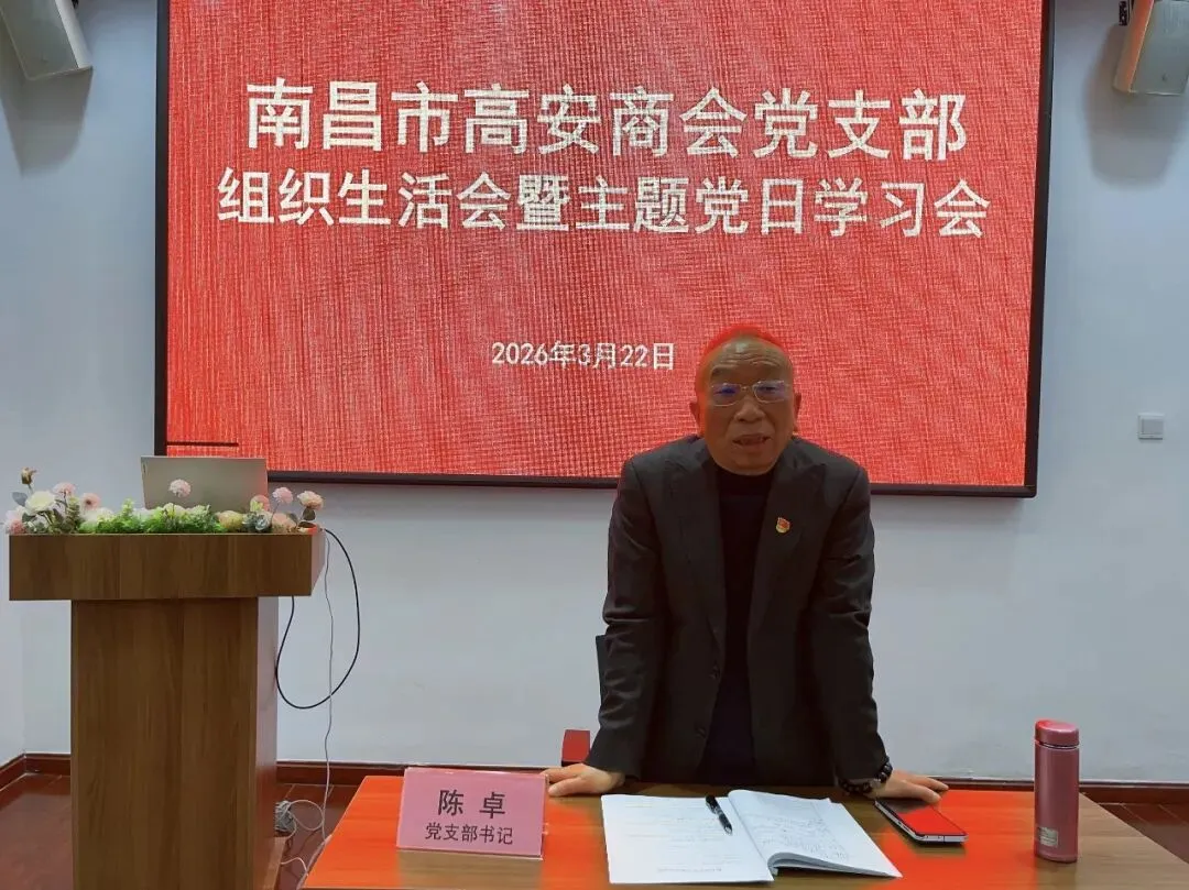 2026 年 3 月 22 日下午,南昌市高安商会党支部 2025 年度组织生活会暨主题党日学习会在商会办公室顺利召开。会议由党支部书记陈卓主持,聂永前、毛鸿昌、刘向阳、陈超等 18 名党员参会,2 名入党积极分子列席会议。会议严格按照组织生活会程序要求开展批评与自我批评。与会党员紧密结合自身工作实际,开诚布公、直面问题,深入剖析在思想淬炼、履职尽责、理论学习等方面存在的不足:有的同志坦言理论学习深度不足,有的同志反思对入党积极分子的培养帮带不够,有的同志因工作繁忙导致党员活动出勤率不高,还有的同志表示联系群众不够紧密。党员之间本着实事求是、互帮互助的原则,相互提出了中肯务实的批评意见,通过此次严肃认真的党内政治生活,全体党员进一步强化了党性修养与责任意识,明晰了今后的整改方向与改进路径。