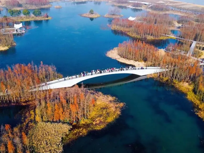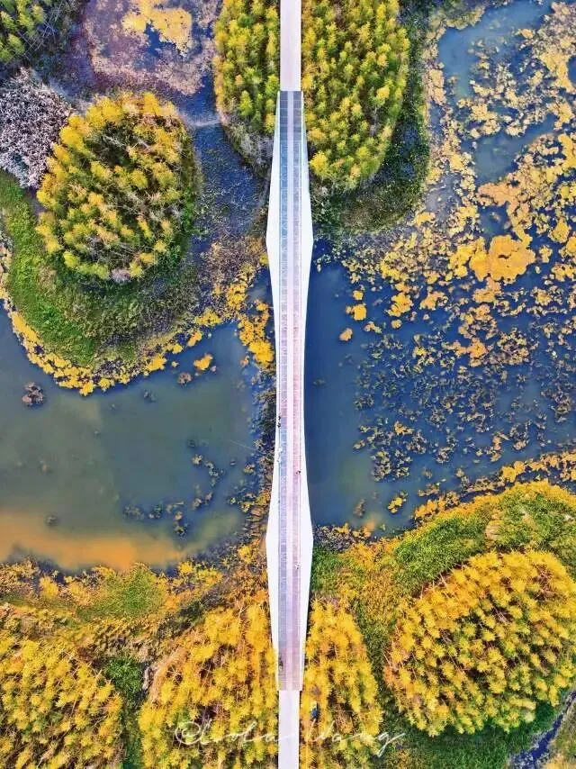 136座水杉岛散落在湖面,栈道直接穿林而过