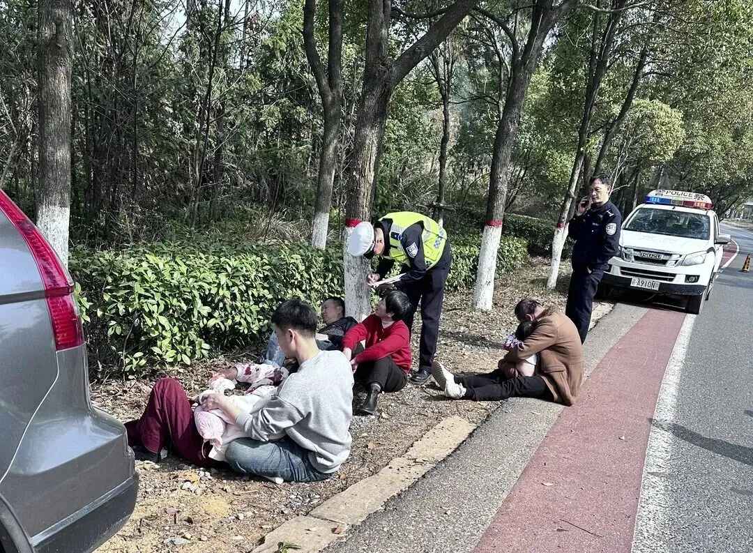 完成伤者的初步救援和伤情处置后,120急救车也火速赶到。熊众顾不上休息,向医护人员详细说明每位伤者的伤情判断、施救过程,配合交警完成现场情况交接后,他才带着妻女悄然离开。