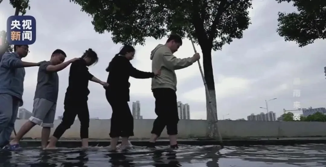 如果多人同时落水,且脚能踩着地,就可以手挽手用牵制力共同抵御洪水。