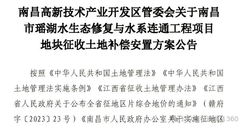 近日,南昌高新区发布瑶湖水生态修复与水系连通工程项目地块征收土地补偿安置方案公告,拟征地总面积达341.937亩,为区域水生态提升与民生休闲配套落地按下快进键。本次征地位于瑶湖西大道以东、瑶湖西一路以北、规划路以西、产业用地以南,涉及昌东镇多个村集体,土地权属清晰、界址无争议。地块将按公共利益需求,用于水工设施用地,保障南昌市瑶湖水生态修复与水系连通工程建设。项目聚焦水系连通、生态修复与岸线提质,建成后将进一步优化瑶湖水系循环、提升水环境质量,打造集生态涵养、亲水休闲、景观展示于一体的绿色廊道,为市民增添高品质滨水休闲空间,助力高新区生态宜居与城市功能品质升级。