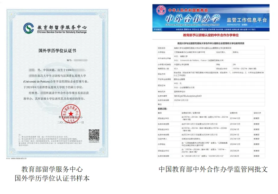 修完规定的课程、成绩合格,完成毕业论文的撰写并通过答辩者,由普瓦提埃大学授予法国教育部颁发的国际企业管理硕士文凭(MasterManagementInternational)。该文凭为法国国家文凭(Diplômed'Etat),受世界各国承认,并可在中国教育部留学服务中心办理中外合作办学国外学历学位认证。