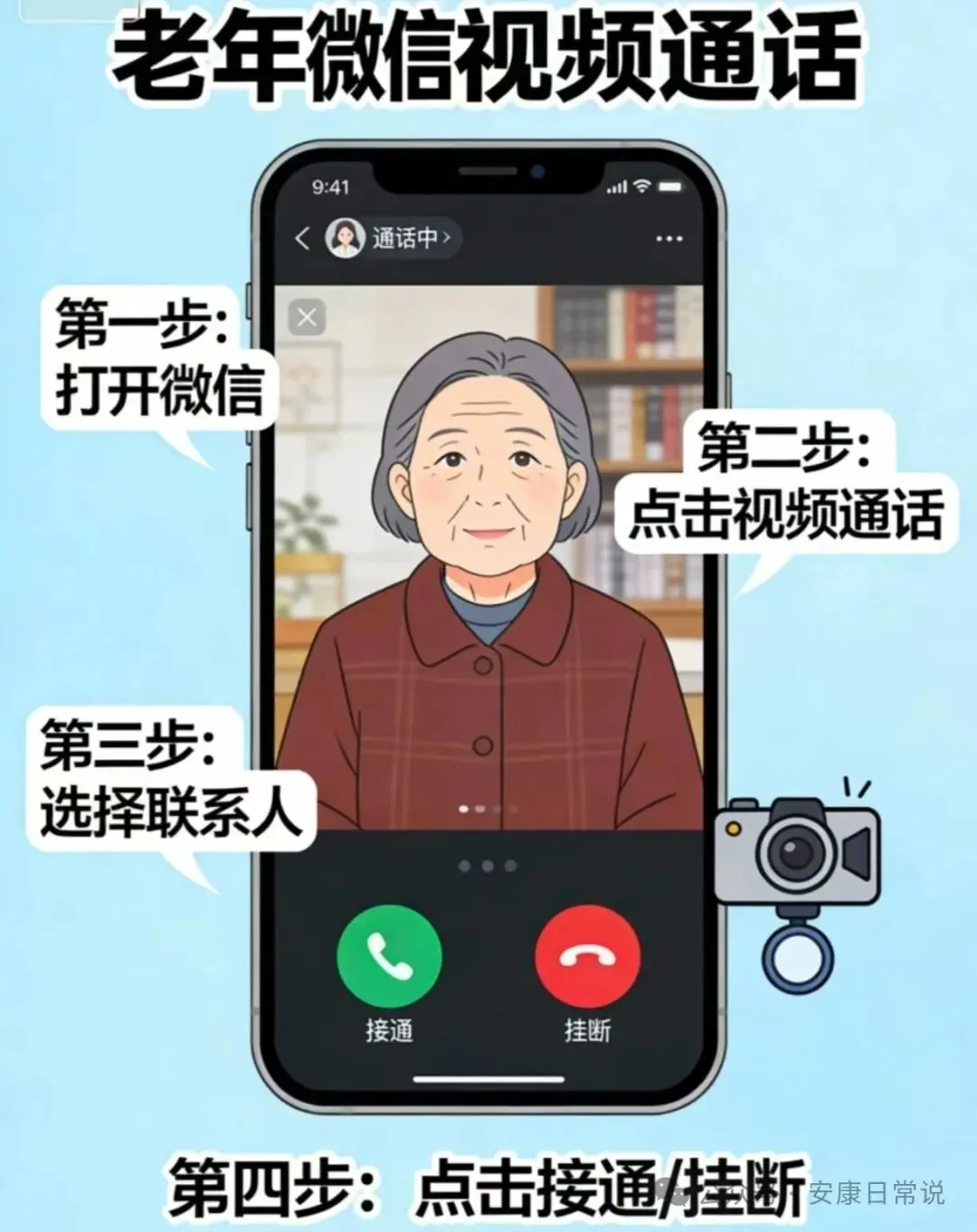 今天这篇文章,字大、话少、步骤简单,只教最实用的3个功能,照着做就能会,看完可以转给家里长辈,也可以念给他们听。一、想孩子了,怎么打视频电话?