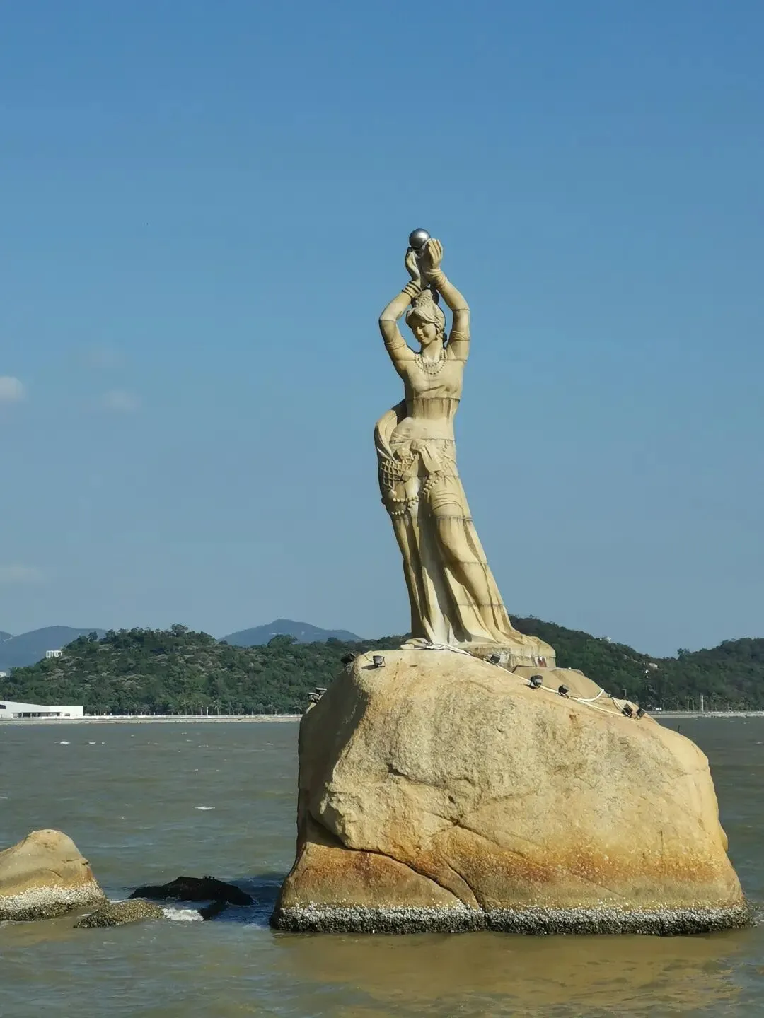 珠海情侣路【渔女像】(约20分钟)珠海渔女雕像位于珠海市香炉湾畔,这尊珠海渔女雕像有8.7米高,重量10吨,用花岗岩石分70件组合而成,是中国著名雕塑家潘鹤的杰作。渔女雕像已成为珠海市的象征,是珠海一处著名的免费的旅游景点。