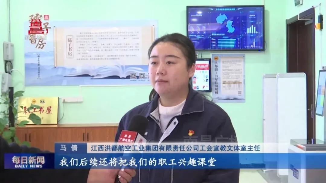 江西洪都航空工业集团有限责任公司工会宣教文体室主任 马倩:“除了日常的一些读书分享和主题沙龙之外,我们后续还将把我们的职工兴趣课堂,还有青年夜校一起融合起来,在这里开展一系列的技能培训、生活美学和心理咨询等活动,也是想为附近的读者们提供一个家门口的‘充电站’和‘暖心港’。”