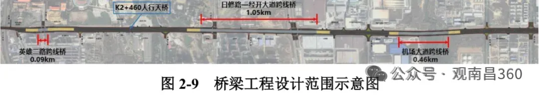 线路设3处跨线桥。分别位于机场路、经开大道一曰修路、英雄二路,其中在机场路预留远期互通立交接口;整体2026年10月底完工。