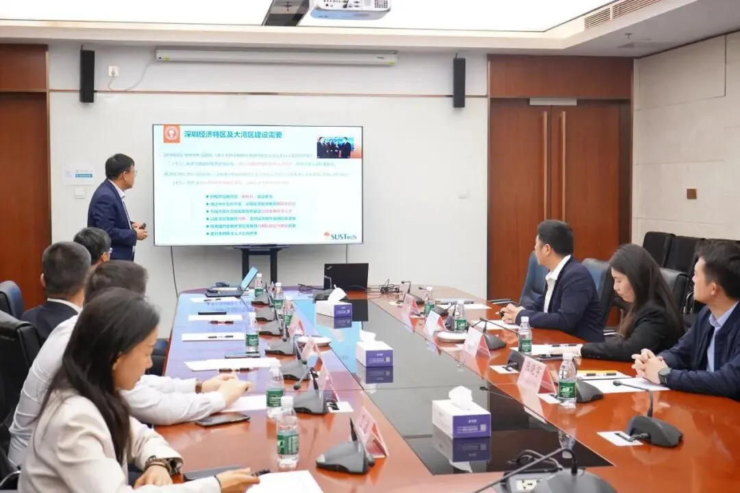 上午,和韵书记一行参观了南科大校园成果展,实地感受学校办学特色与发展成果。随后,双方在台州楼会议室举行座谈,座谈会议由王鹏飞书记主持。王鹏飞书记代表南方科技大学医学院对南昌大学玛丽女王学院一行的到来表示热烈欢迎,简要介绍了南方科技大学医学院的整体发展布局,强调学校依托粤港澳大湾区优势,致力于打造高水平中外合作办学典范。张健副院长围绕学院建设背景、办学概况、教育教学特色、管理架构、招生培养、学生发展等方面,详细介绍了南方科技大学伦敦国王学院医学院的办学实践与建设成效。和韵书记对学院的精心安排与分享表示感谢,并介绍了南昌大学玛丽女王学院的办学历史、项目特色、人才培养成果与管理经验。
