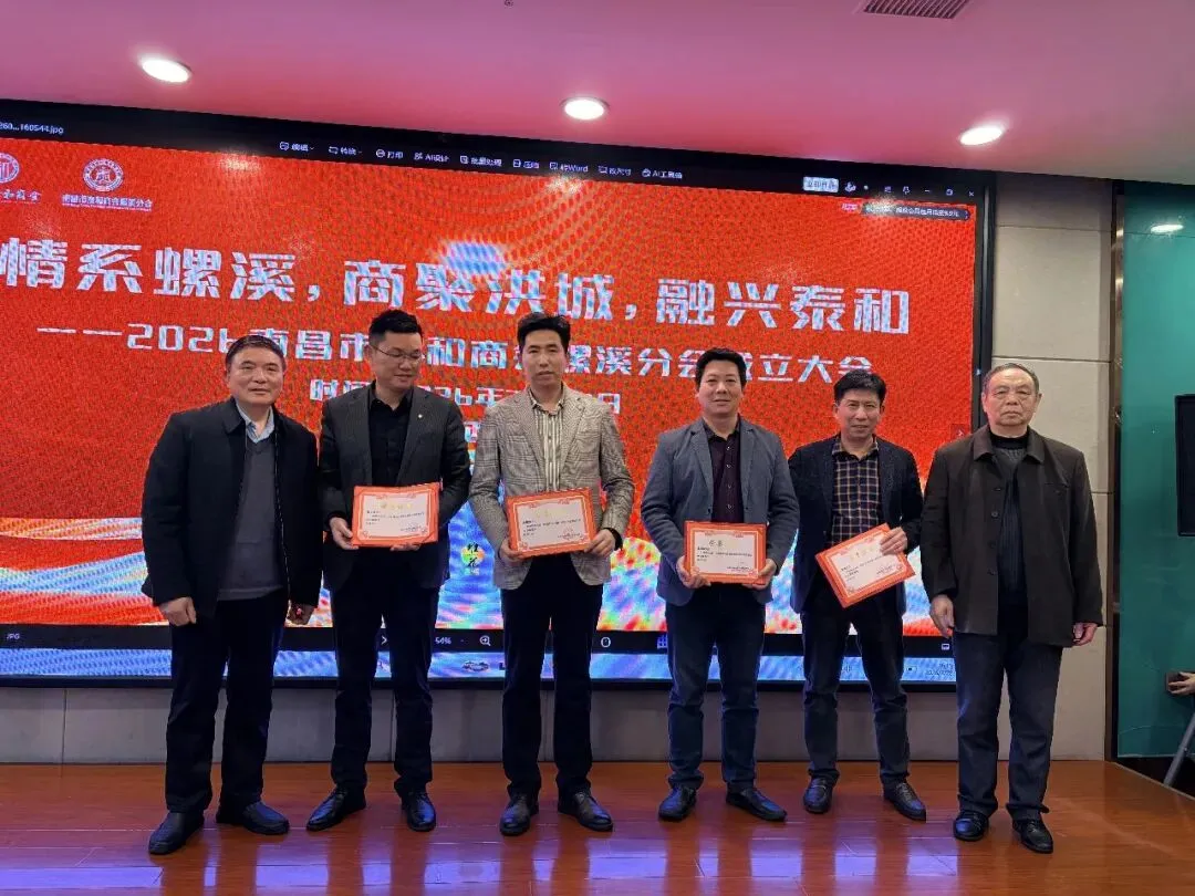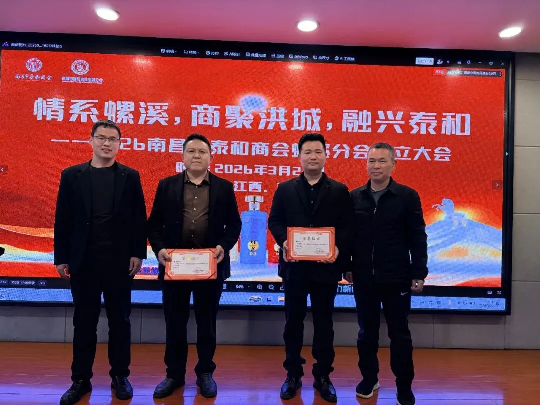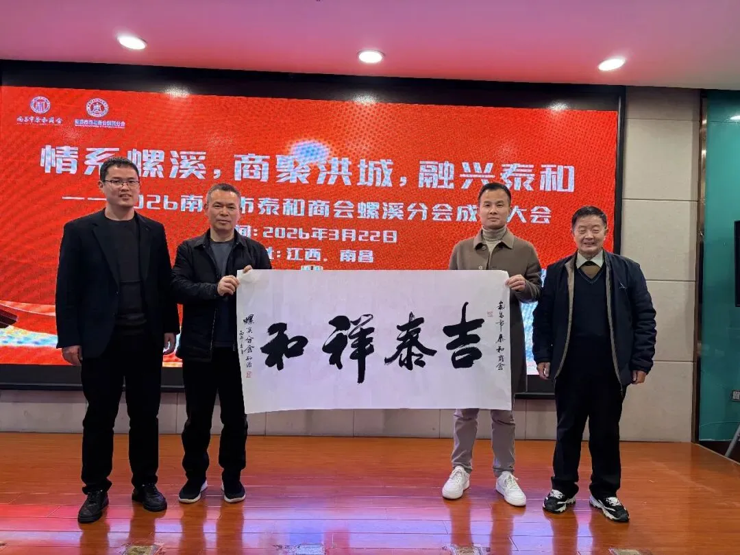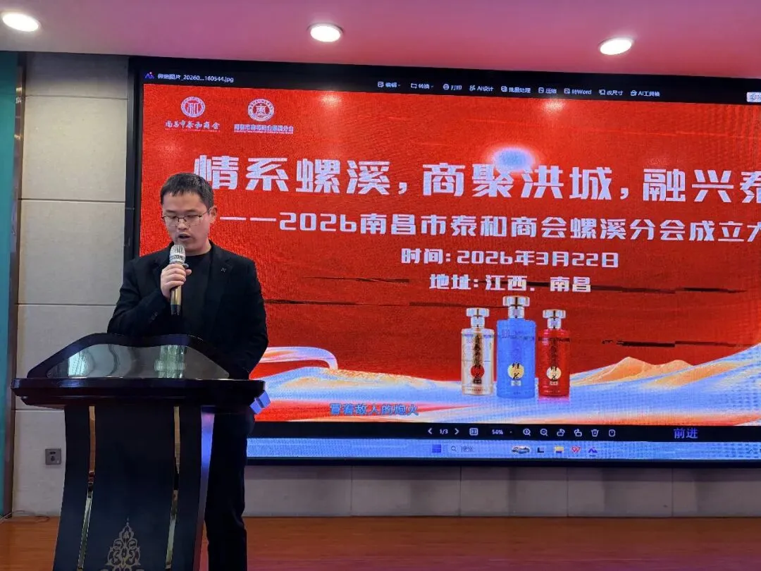 2026年3月22日下午,南昌市泰和商会螺溪分会成立大会在海天汇大酒店隆重举行。泰和县螺溪镇镇长张以术、螺溪镇党委副书记敖海玮、螺溪商会会长胡俊明、南昌市泰和商会党支部书记夏侯焕志,以及在昌螺溪籍企业家代表、各界友人欢聚一堂,共同见证这一里程碑时刻。