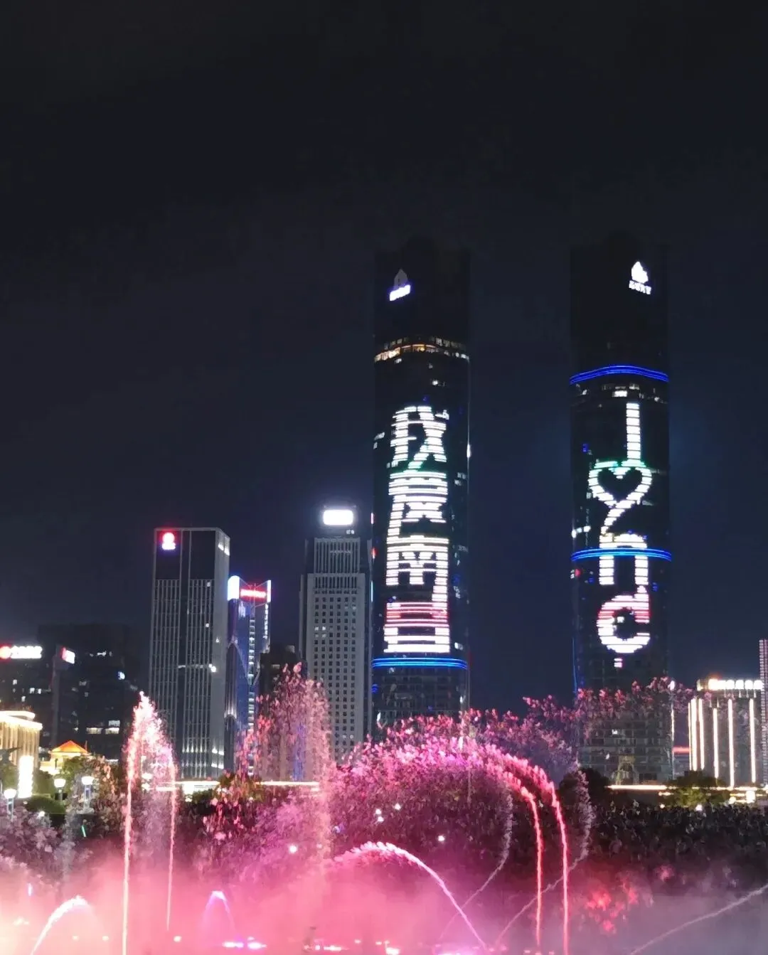 紧邻喷泉的是南昌双子塔,又称绿地中心双子塔,高303米,是南昌的地标性摩天大楼,也是目前中国最高的双子塔。夜晚,双子塔的灯光璀璨夺目,与秋水广场的喷泉交相辉映,站在江边远眺,整座城市的夜景尽收眼底,我们可以在这里打卡拍照,感受南昌现代化的都市风貌。