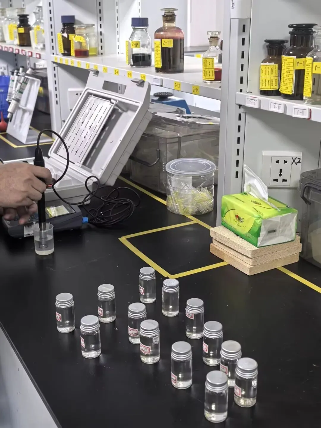 图为团队在实验室进行水质检测