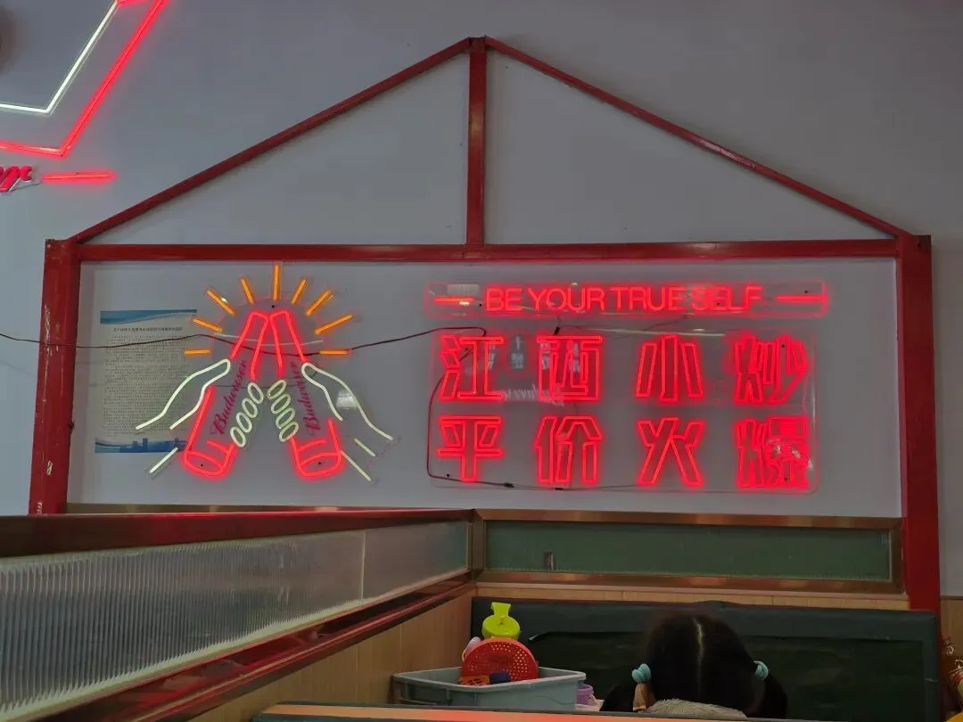 馆子装修是极朴素的,墙白得发旧,桌子铺着清爽的桌布,老板操着一口南昌话招呼客人,热乎气扑面而来。南昌的小炒从来不靠环境取胜,靠的就是这一锅一锅烧出来的香,这是赣江边上养出来的烟火性子——实在,热情,够味。