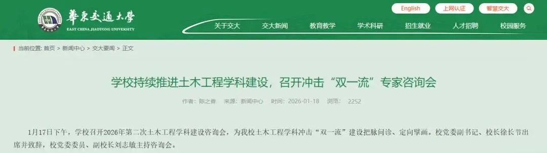 这里多说一句华东交大 , 今年1月份学校专门开了个土木工程学科建设咨询会 , 请了西南交大在内的二十多所高校专家来"把脉" , 摆明了要在土木方向冲双一流 , 能不能成不好说 , 但这个劲头值得关注。