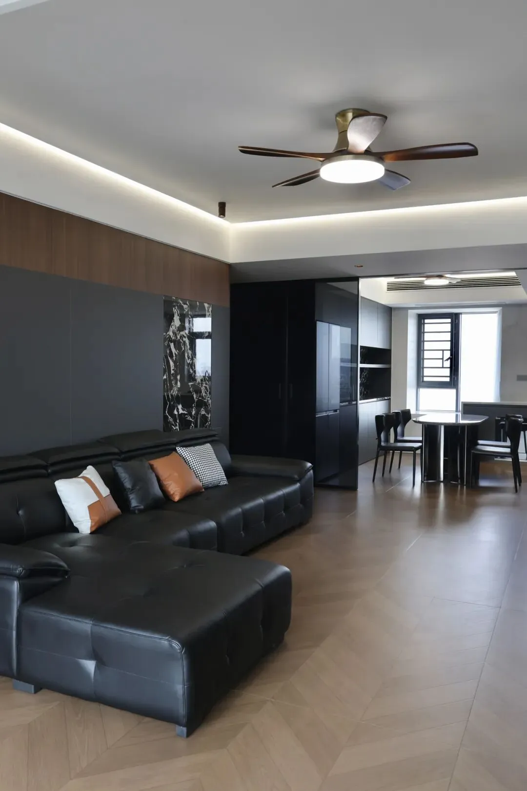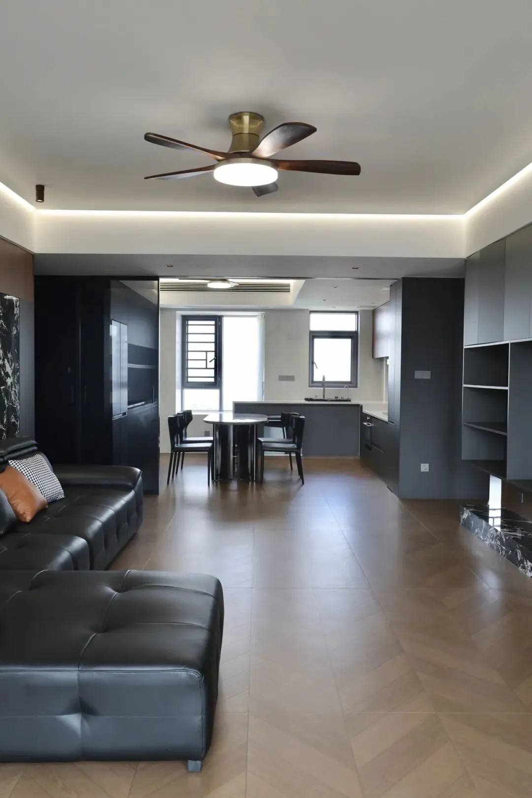打破传统客、餐、厨的墙体阻隔,采用一体化开放布局,让三个空间自然衔接、视野互通。