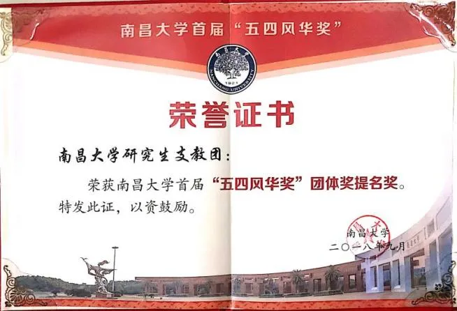 南昌大学研支团获“五四风华奖”团体奖提名奖
