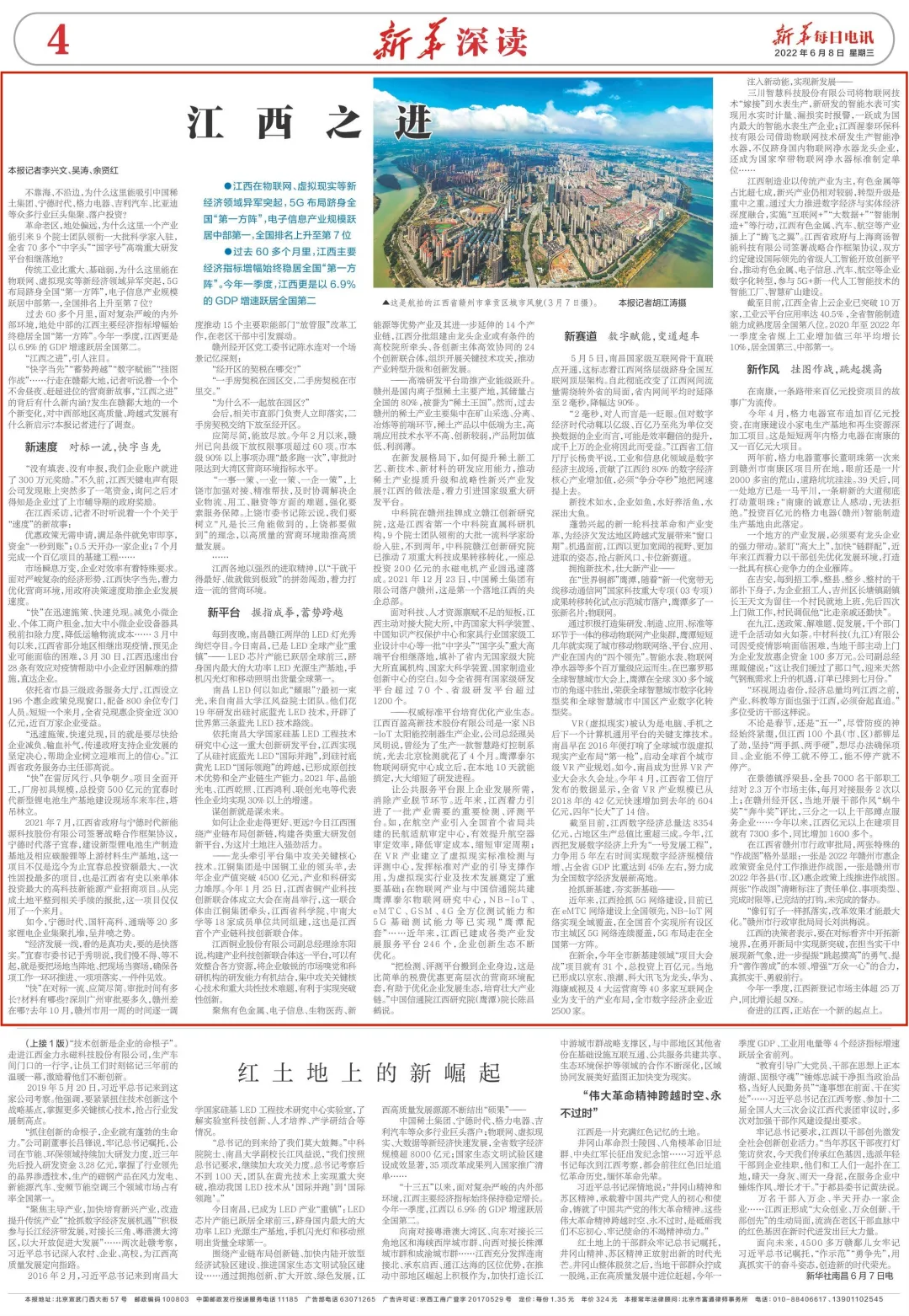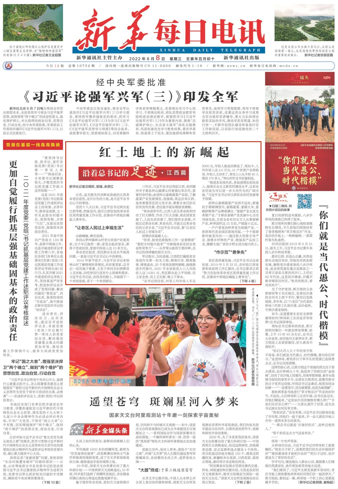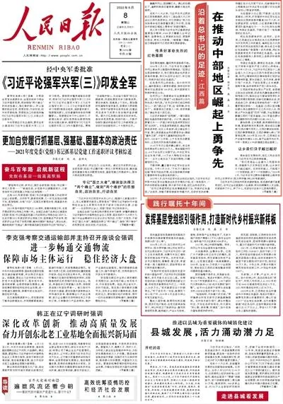 6月8日,人民日报、新华社、中央电视台、央广网、中国青年报等主流媒体分别刊发文章,报道江西广大干部群众牢记习近平总书记嘱托,抓住战略机遇,用走好新时代长征路的精神和智慧,开创中部地区崛起新局面的成效与举措。