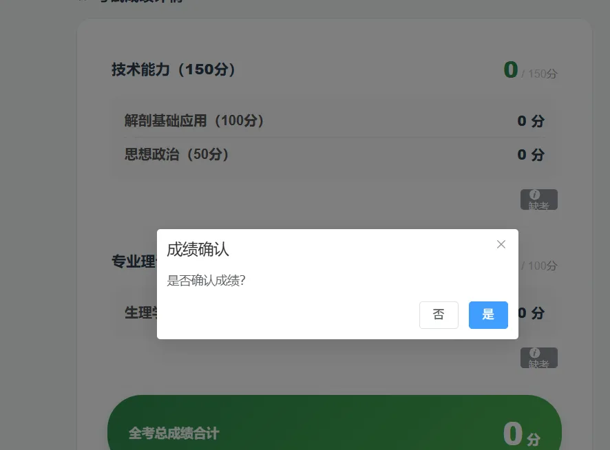 在点击绿色“确认成绩”按钮