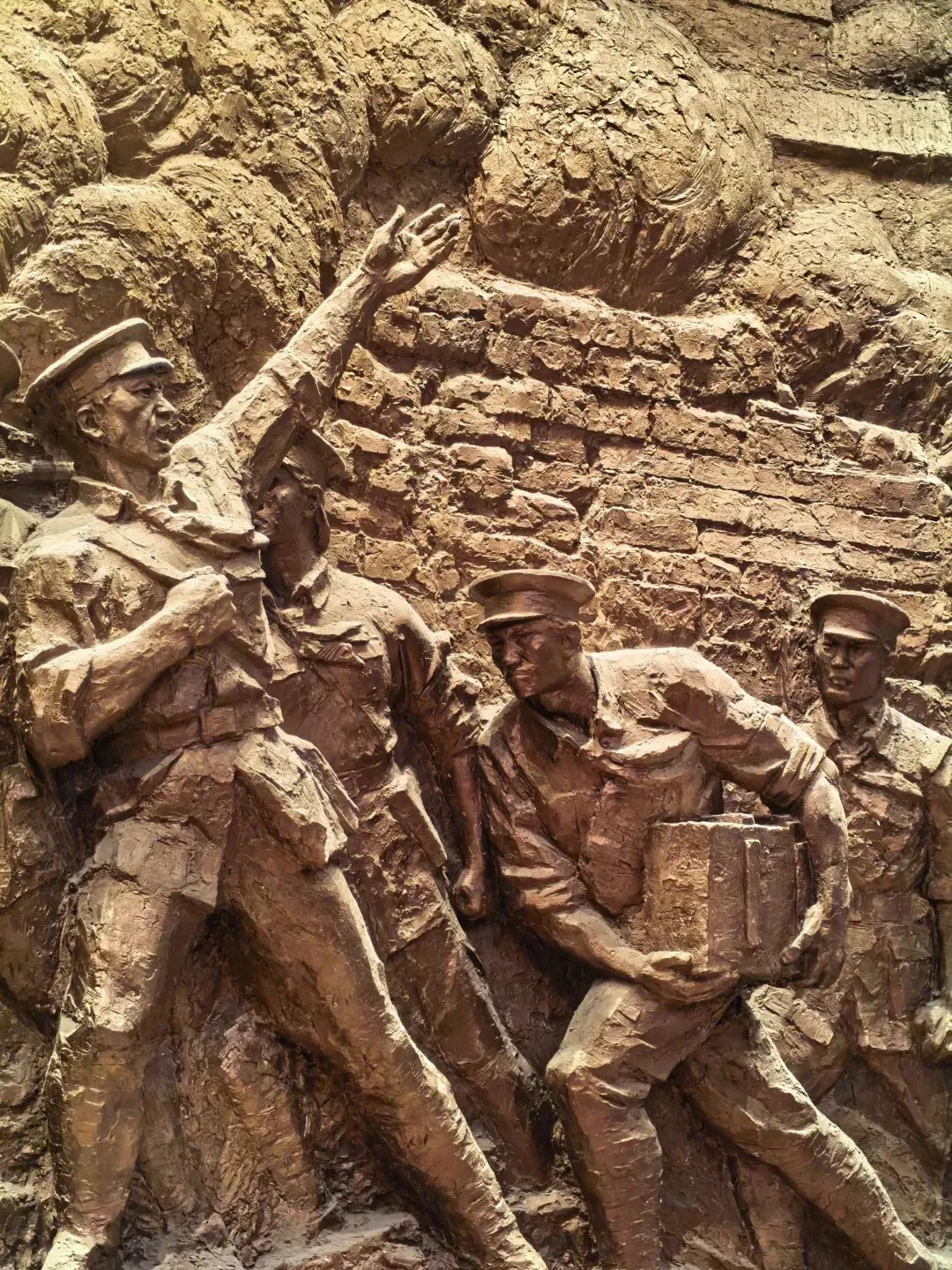 雕塑中,革命先辈们神情坚毅、身姿挺拔,冲锋的姿态仿佛将人拉回那个风雨如晦的年代,每一处细节都充满力量,让人瞬间感受到革命先辈们的热血与担当。