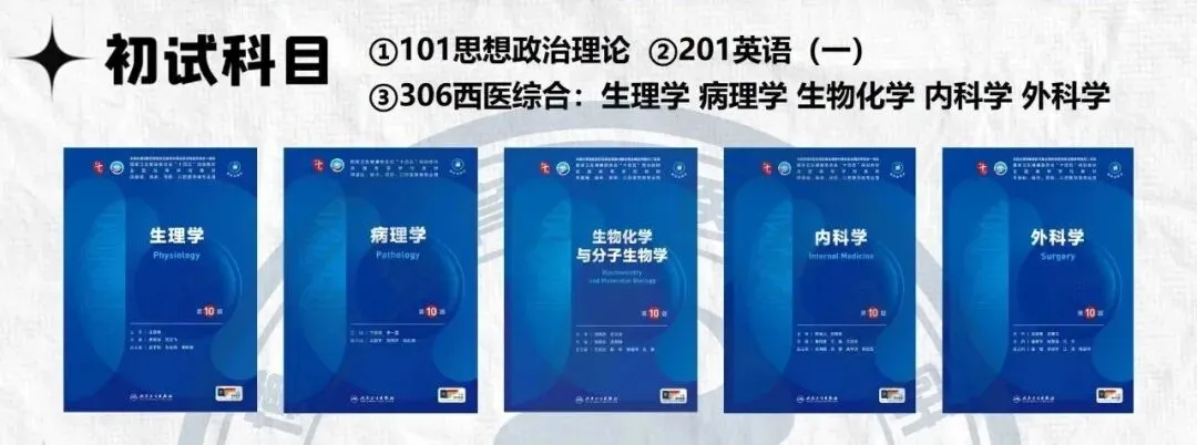 ✅初试科目:101 思想政治理论、201 英语(一)、306 西医综合(生理、病理、生化、内科、外科)