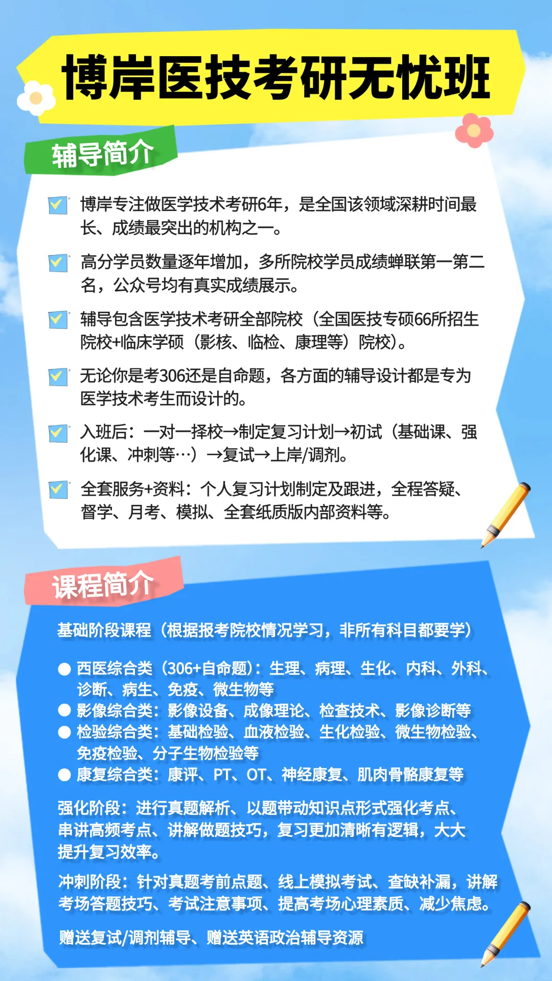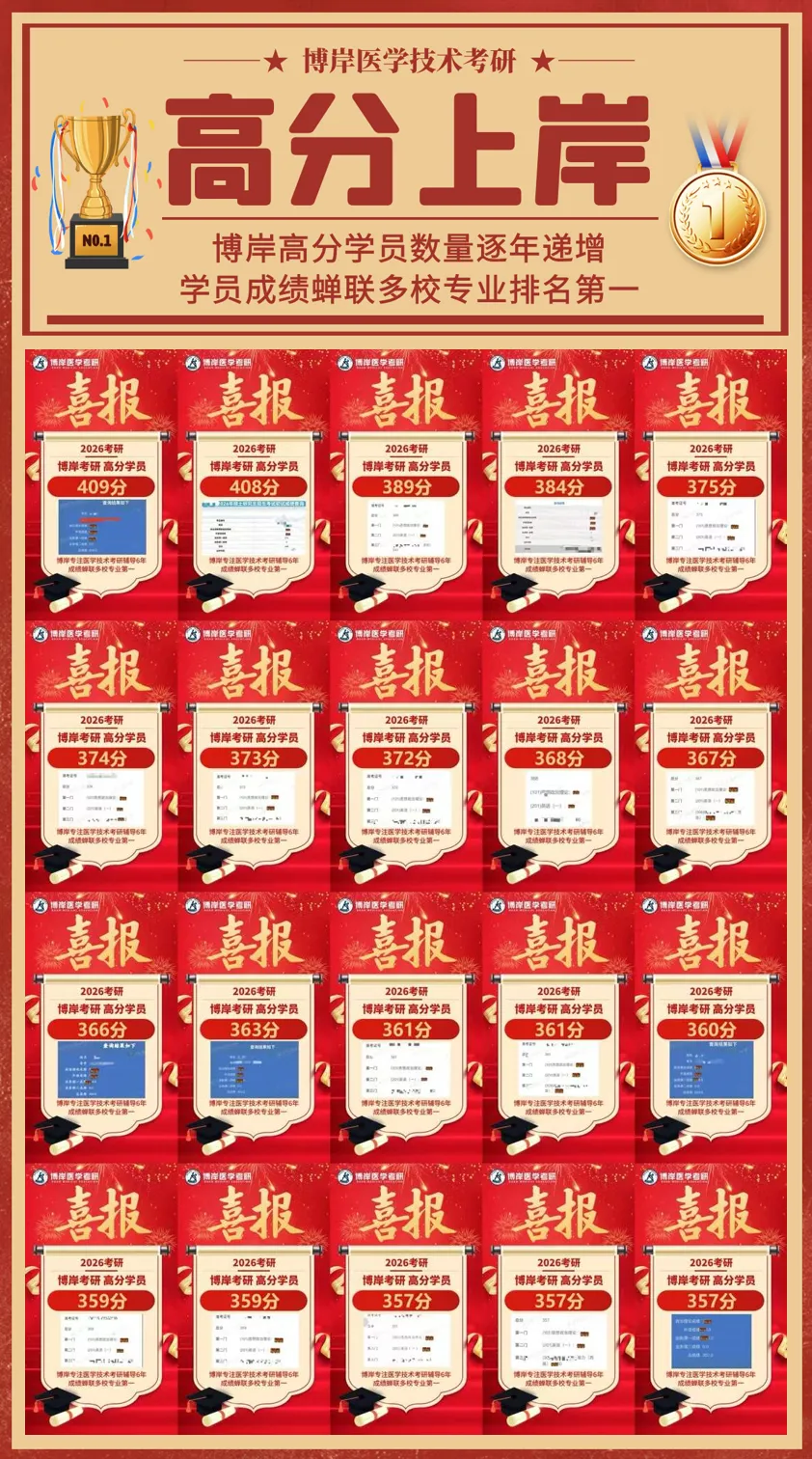 ✅ 全程考研辅导:专注医技考研6年,高分学员成绩蝉联多校专业第一。