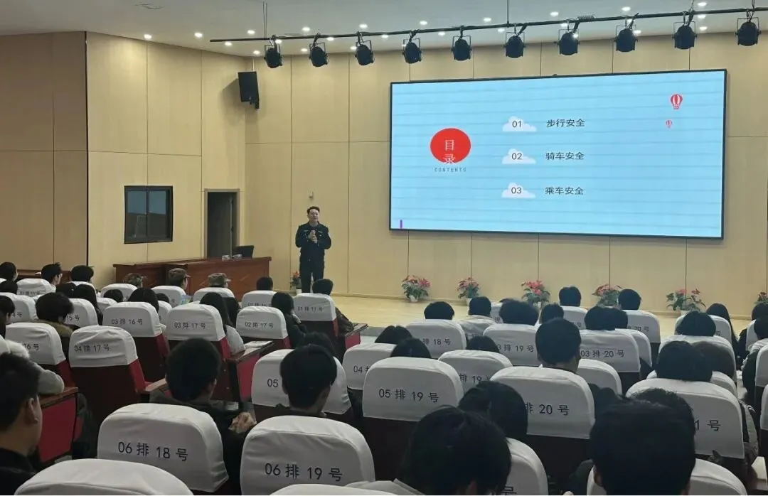 活动伊始,乐化交警中队徐警官结合中职学生出行特点与轨道专业学生职业发展需求,以 “理论讲解 + 案例分析 + 现场视频演示” 形式开展专题授课。课程围绕步行、骑行、乘车安全及 “一盔一带”、车辆盲区等核心要点,用通俗语言剖析闯红灯、未满 16 周岁骑电动车等交通违法行为的危害,结合真实事故案例开展警示教育;同时紧扣轨道专业特性,重点讲解道轨通行规范、公共出行文明等内容,引导学生将安全意识融入专业学习与职业素养培养。